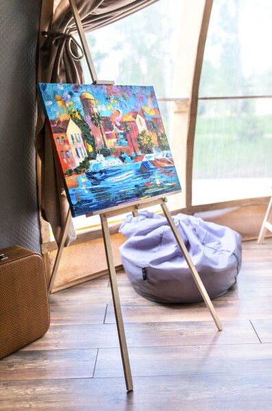 Футуристичная и уютная сфера, обшитая мягким, плюшевым мехом в светлых тонах. Интерьер сферы посвящен искусству: на стенах вы найдете картины российских художников, а на журнальном столике — книги о живописи.