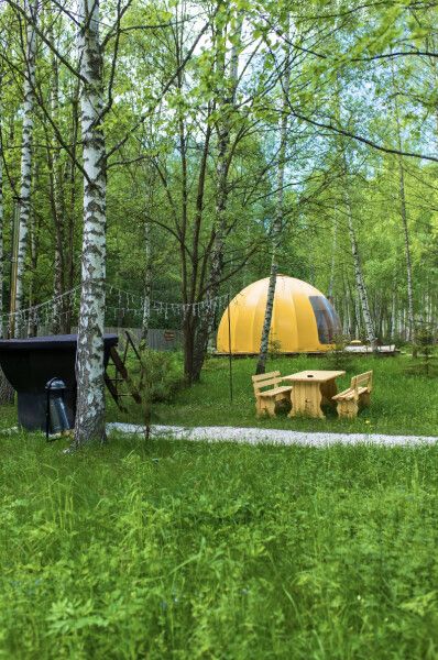Глэмпинг «Багио» - это тихое уединенное место внутри заповедного леса всего в 100 км от Москвы. На территории десять купольных домиков-сфер, два семейных дома с 2-я спальнями и гостиной, а так же три дома для двоих. Дома оборудованные всем необходимым для комфортного проживания в любое время года. В номерах есть: кухня со всей необходимой техникой и посудой, кофемашина + капсулы, чай, фен, полотенце, постельное бельё, косметика для душа, большая терраса с мангальной зоной, шезлонг. Для маленьких детей предоставляется кровать-манеж.