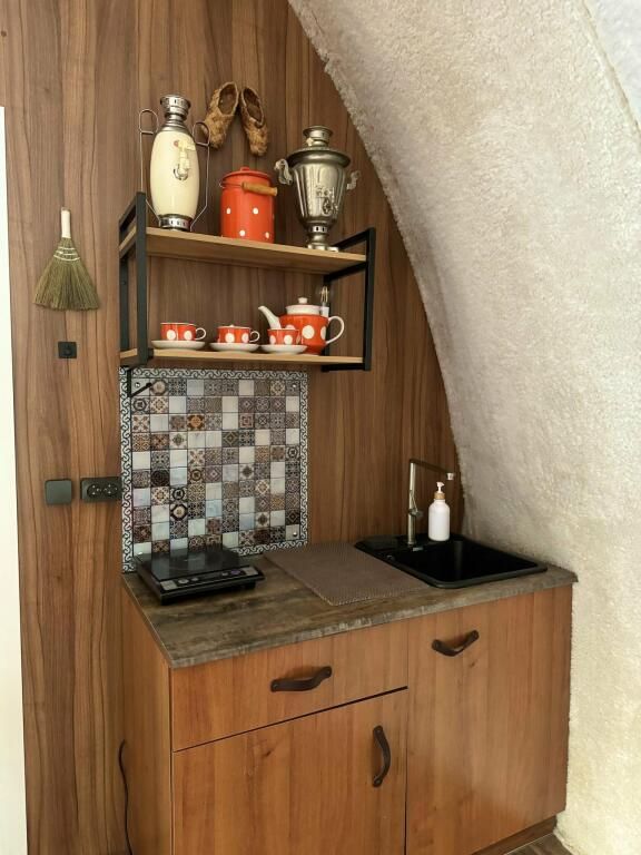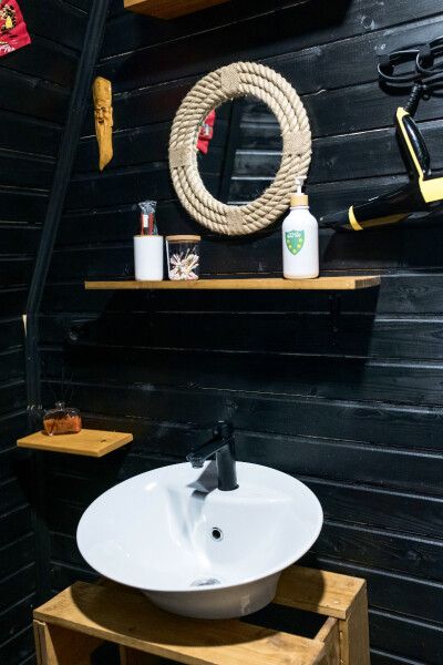 В сфере есть всё для комфортного отдыха: кондиционер, санузел, душ, фен, кухня со всем необходимым оборудованием и посудой, кофемашина. В вашем распоряжении огромная личная веранда с садовой мебелью, шезлонгом и мангальной зоной. Именно на веранде расположен индивидуальный горячий банный чан.