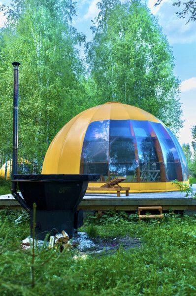 В сфере есть всё для комфортного отдыха: кондиционер, санузел, душ, фен, кухня со всем необходимым оборудованием и посудой, кофемашина. В вашем распоряжении огромная личная веранда с садовой мебелью, шезлонгом и мангальной зоной. А еще в этой сфере есть возможность арендовать горячий банный чан.