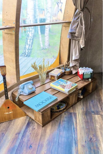 Уютная сфера, обшитая мягким и плюшевым мехом в светлых тонах, и стилизованная под бабушкин домик.