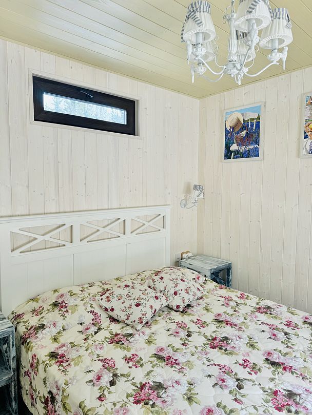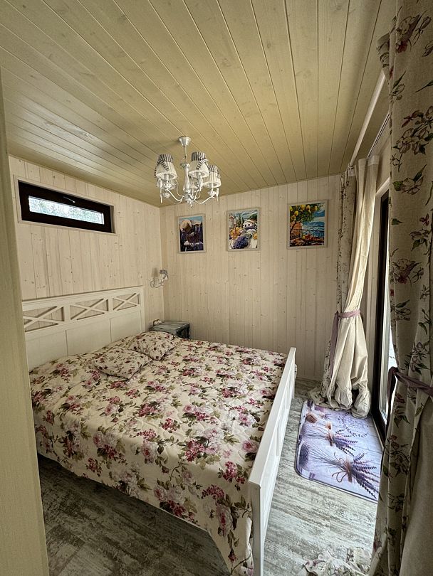 В доме есть все необходимое для комфортного проживания: большая кухня со всей необходимой посудой, холодильником, плитой, чайником, кофемашиной + капсулы, микроволновой печью. Гостиная, ванная комната с просторной душевой, а также две спальни: одна с большой двуспальной кроватью, а вторая предназначена для наших маленьких гостей — с игрушками и двухъярусной кроватью, размер каждого спального места 90*200.