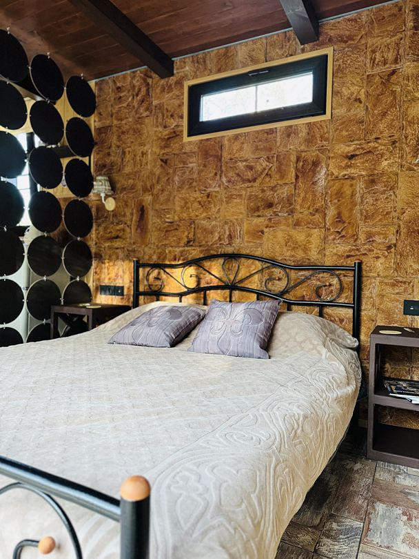 Модульный дом, площадью 21 кв.м., рассчитанный на комфортное размещение двух человек. Дизайн интерьера выполнен в итальянском стиле: стены из камня, массивные потолочные балки, фрески и предметы интерьера из Флоренции.
