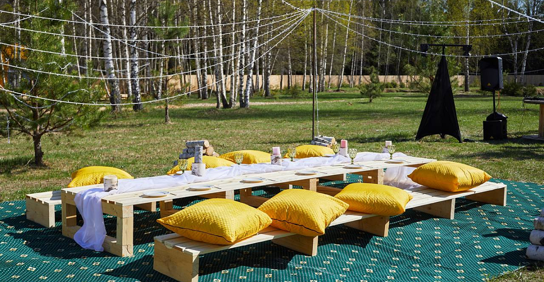 У каждой сферы индивидуальная мангальная зона, в нее входит мангал и шампура, угли и розжиг нужно обязательно привозить с собой.