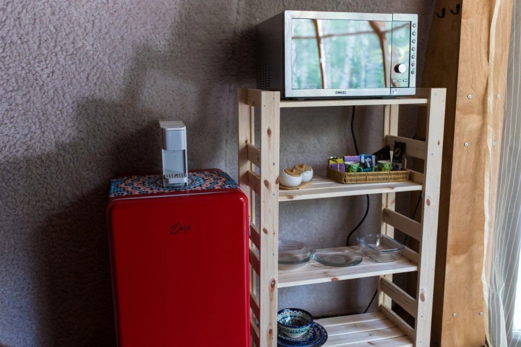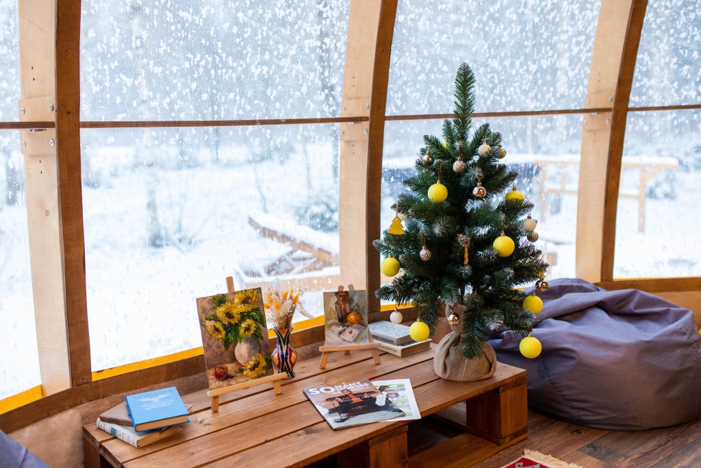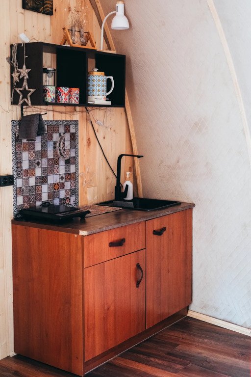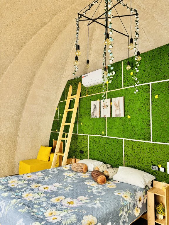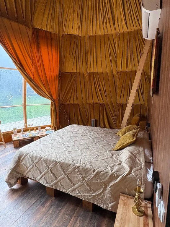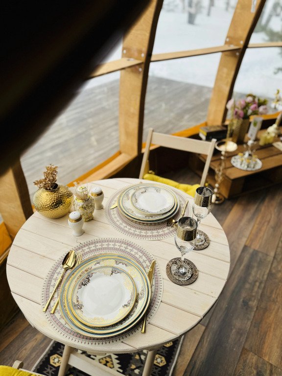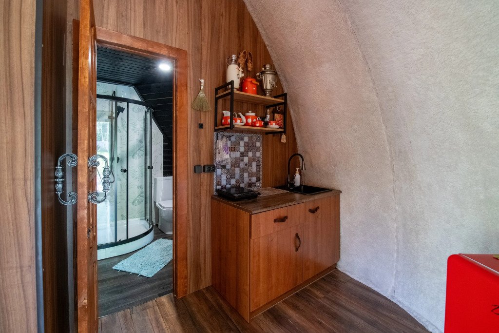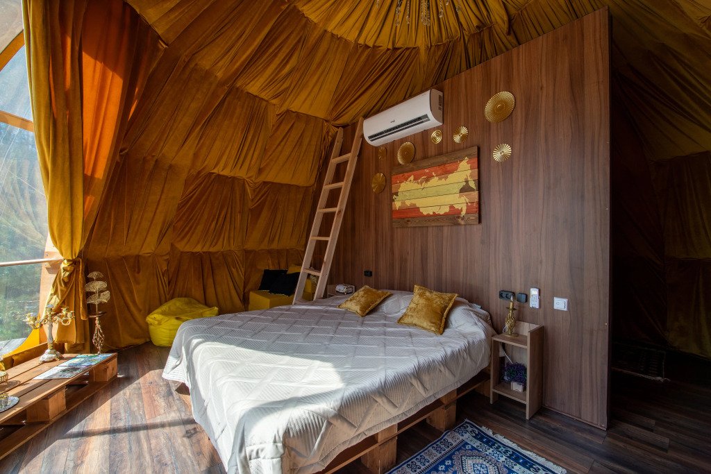 На территории глэмпинга доступны 10 купольных домиков-сфер, 2 семейных дома с 2 спальнями и гостиной, а также 3 дома для 2 гостей. Дома оборудованы необходимыми удобствами для проживания в любое время года. Удобства: кухня с техникой и посудой, кофемашина с капсулами, чай, фен, полотенца, постельное бельё, косметика для душа, терраса с мангальной зоной, шезлонг. Для маленьких детей предоставляется кровать-манеж. Из каждого панорамного окна открывается вид на лес.