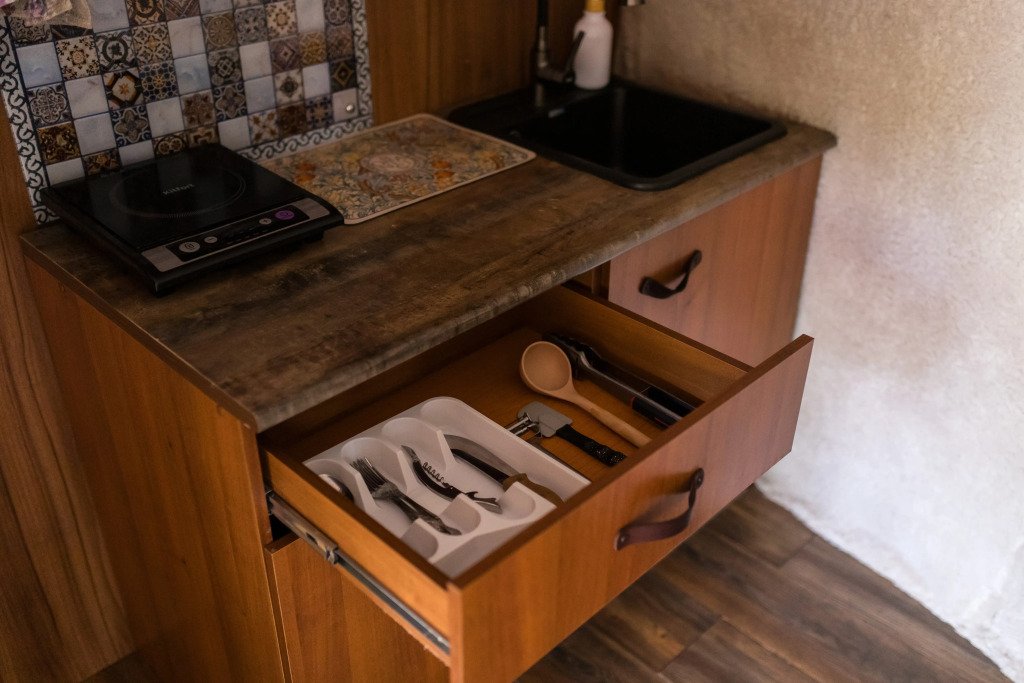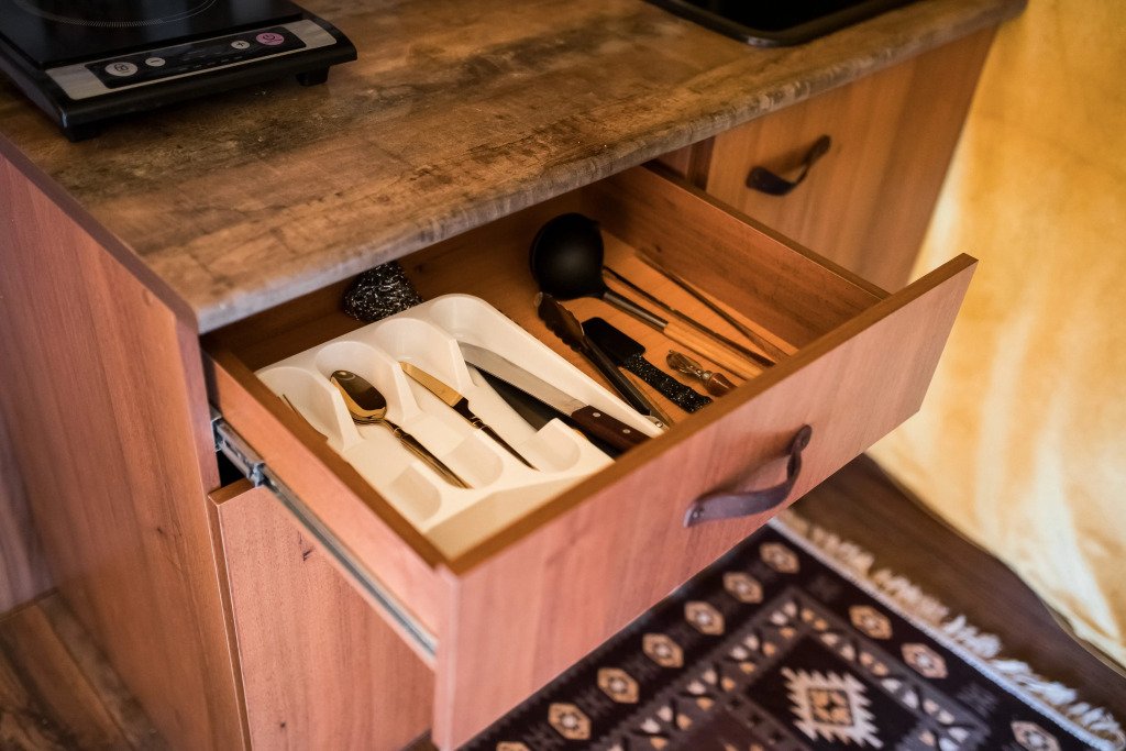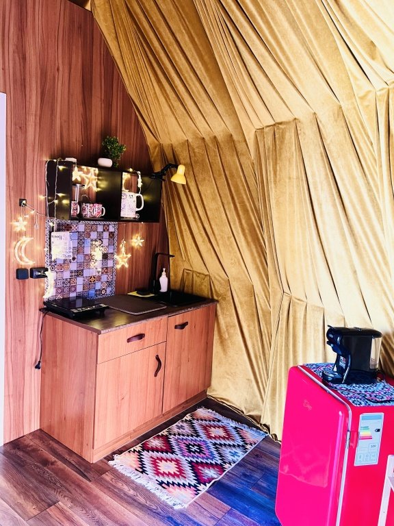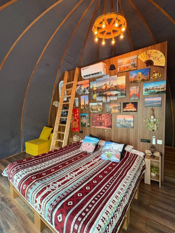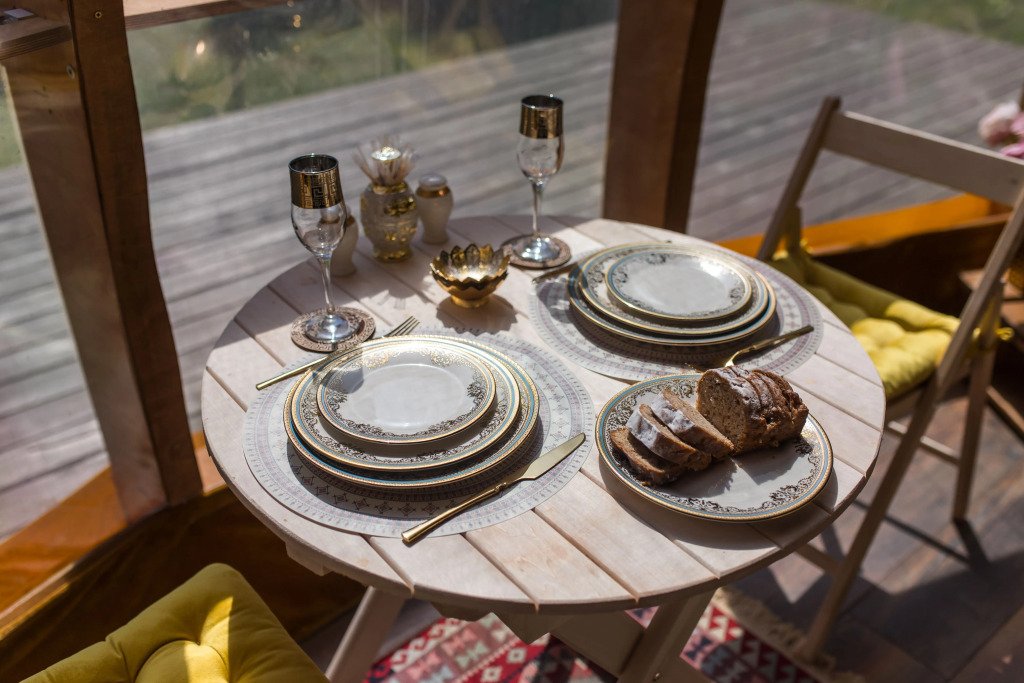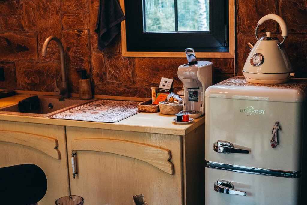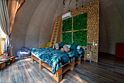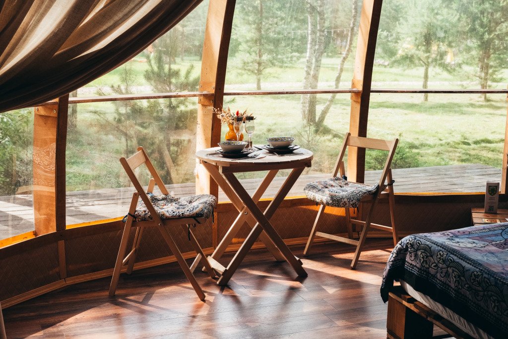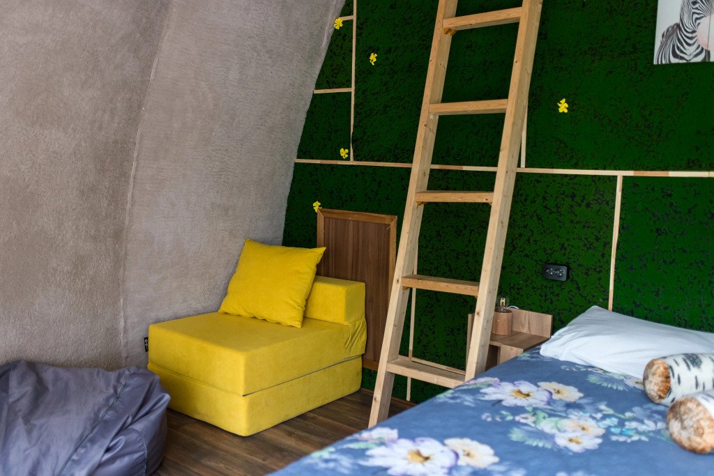 На территории глэмпинга доступны 10 купольных домиков-сфер, 2 семейных дома с 2 спальнями и гостиной, а также 3 дома для 2 гостей. Дома оборудованы необходимыми удобствами для проживания в любое время года. Удобства: кухня с техникой и посудой, кофемашина с капсулами, чай, фен, полотенца, постельное бельё, косметика для душа, терраса с мангальной зоной, шезлонг. Для маленьких детей предоставляется кровать-манеж. Из каждого панорамного окна открывается вид на лес.