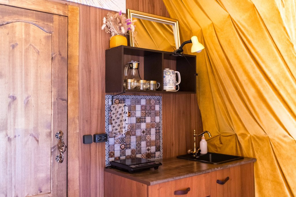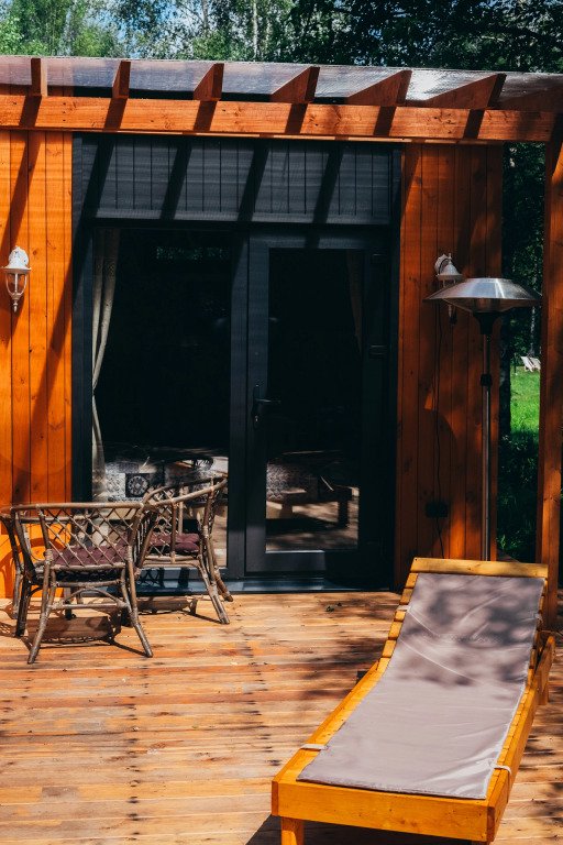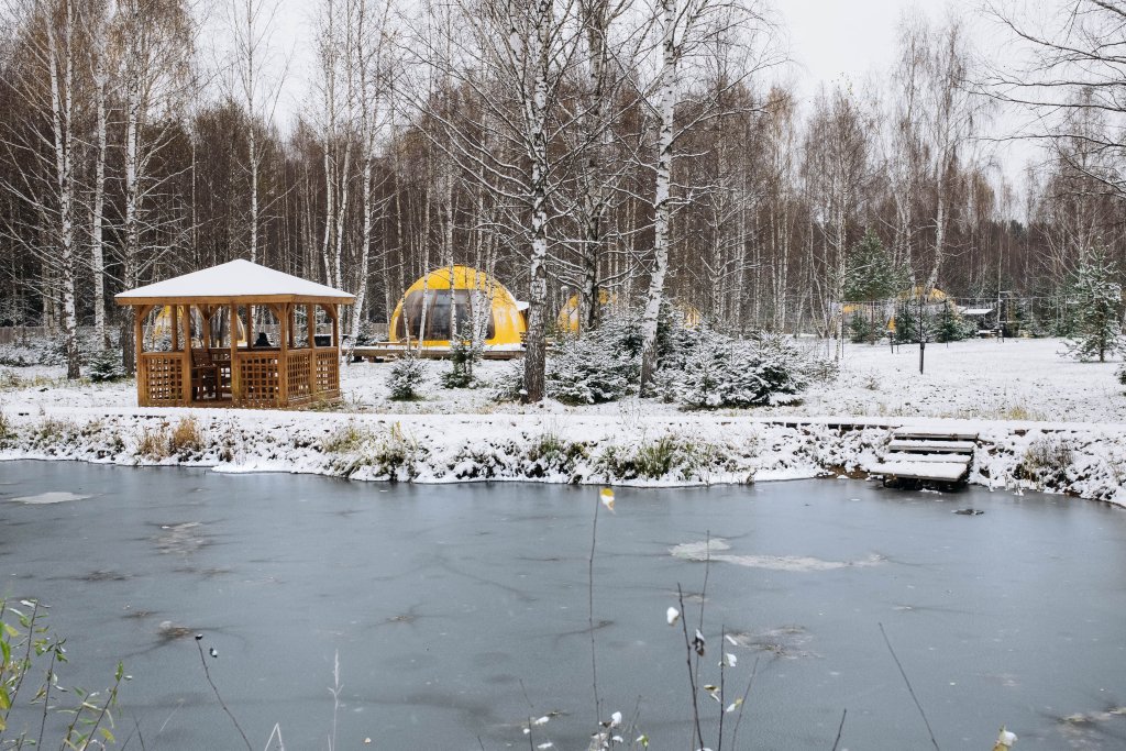 В глэмпинге есть подогреваемый бассейн под открытым небом с шезлонгами и пляжным волейболом. Бассейн бесплатный и работает круглый год. На территории глэмпинга имеются: пруд с подсветкой, детская площадка, спортивная площадка. У каждого дома — банный чан, а также гостям предлагается русская баня на дровах.