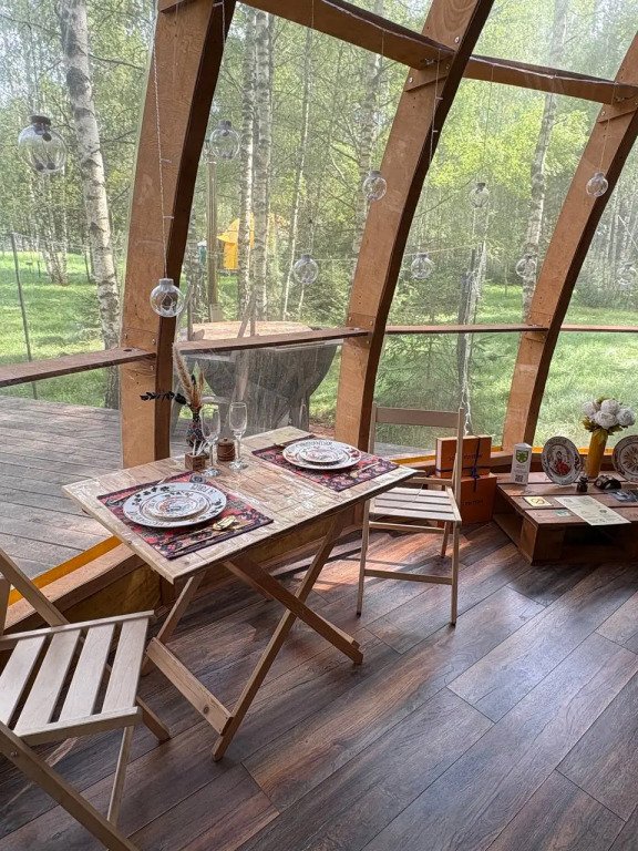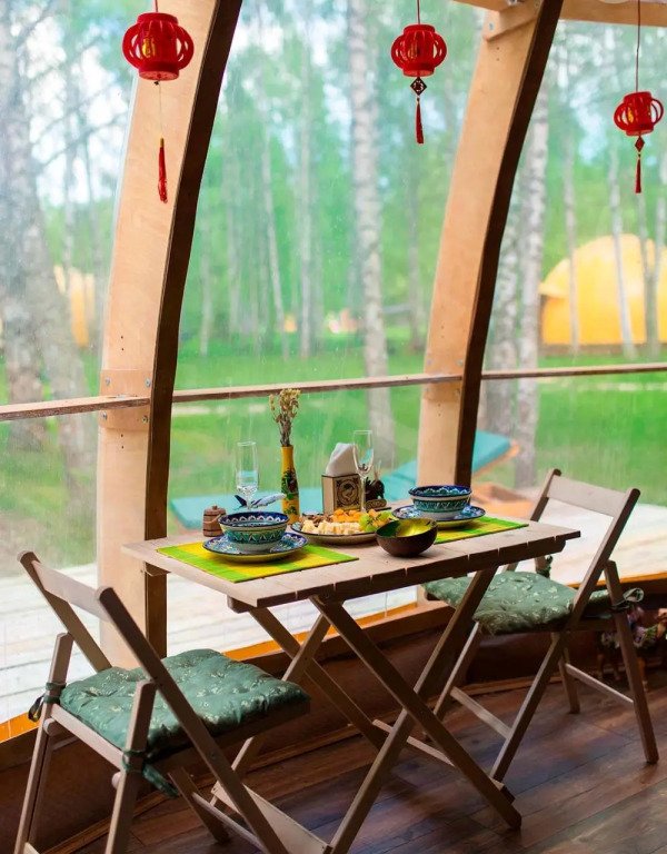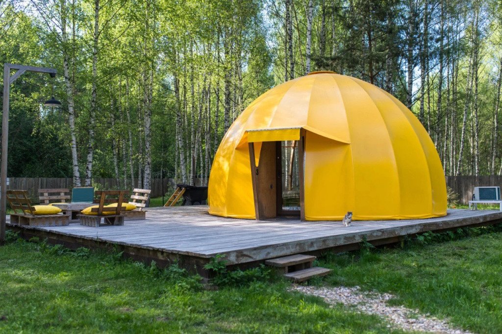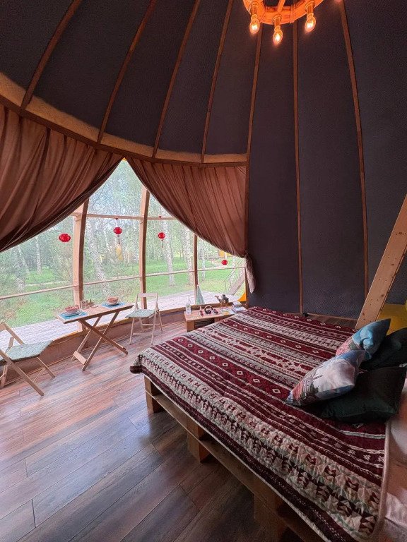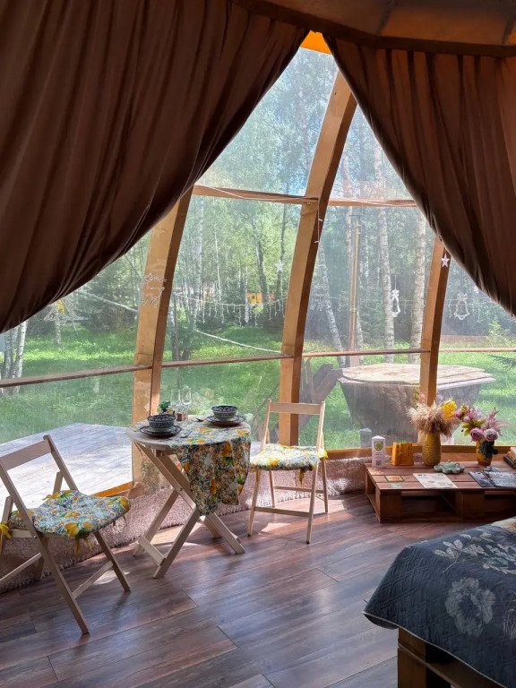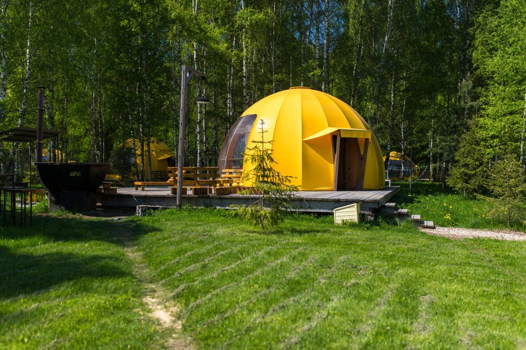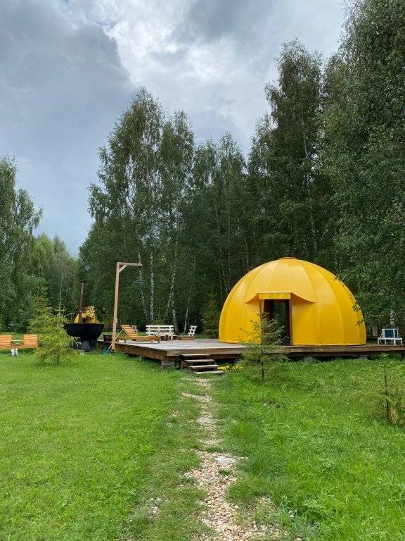 Глэмпинг «Багио» расположен внутри заповедного леса в деревне Харланиха-2, в 100 км от Москвы.