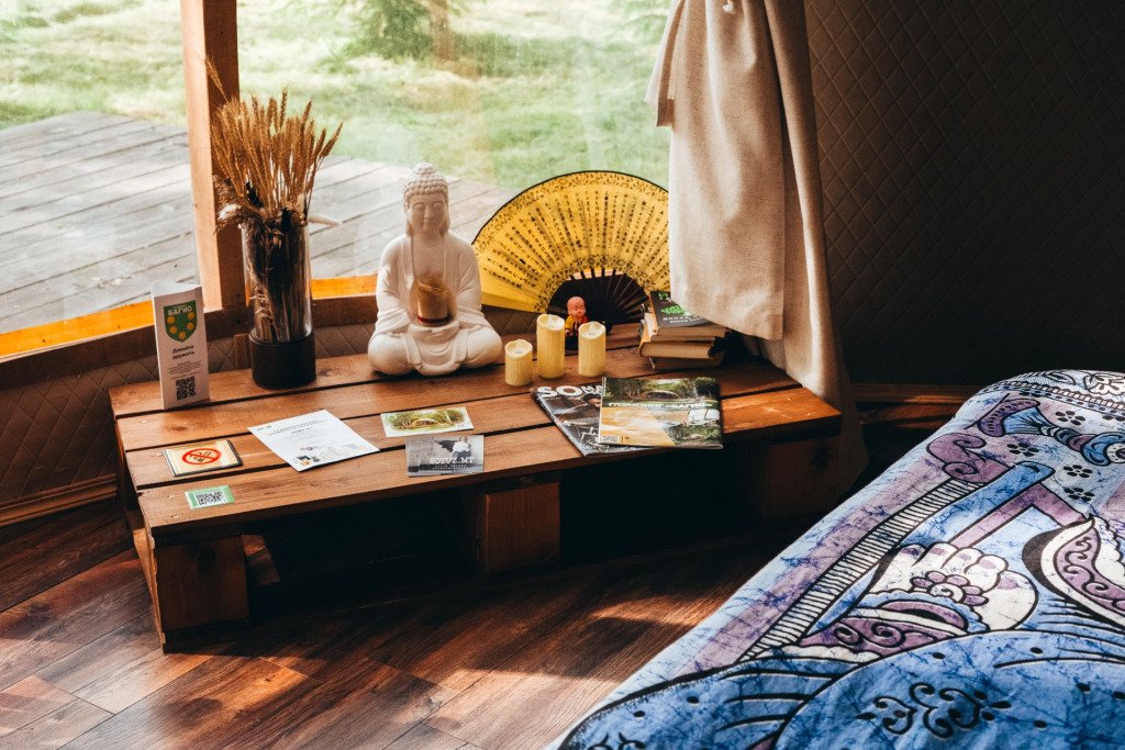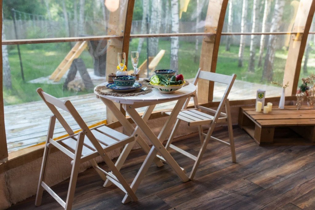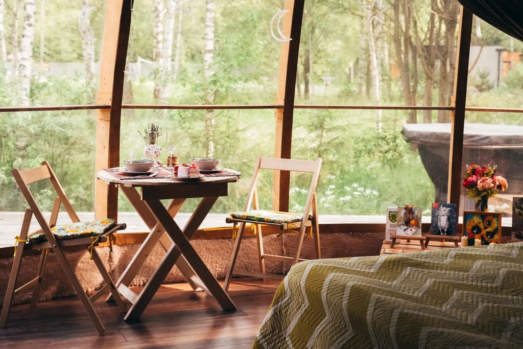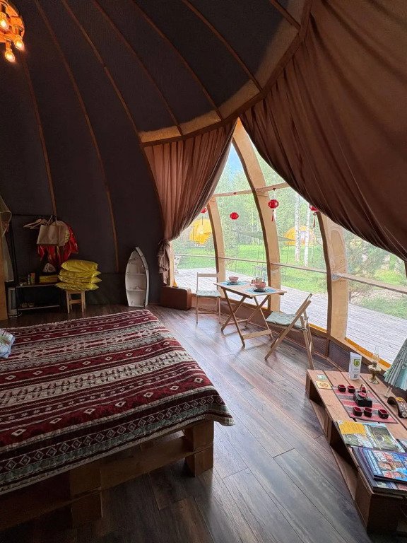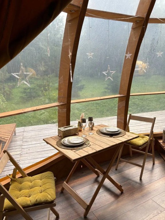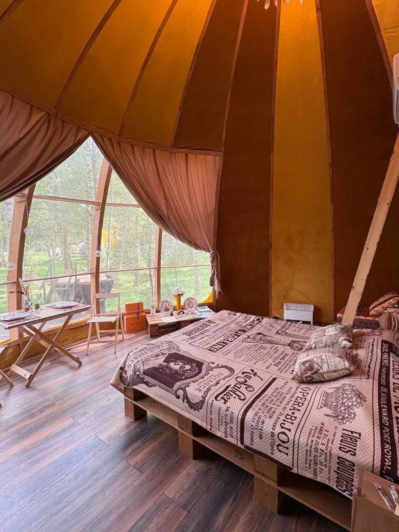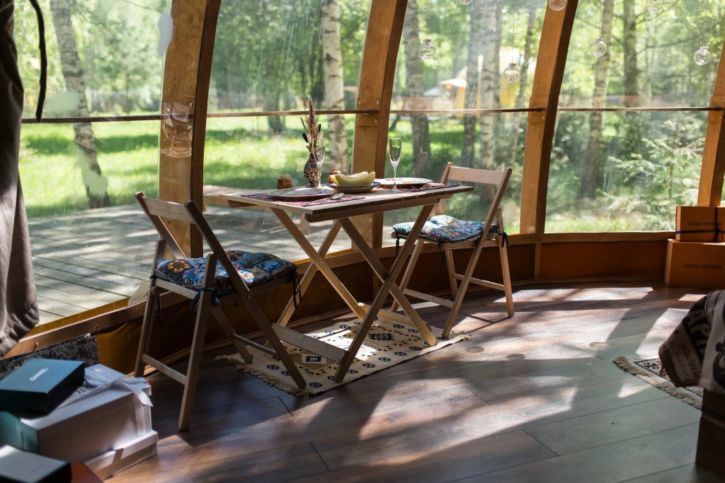 Глэмпинг «Багио» расположен внутри заповедного леса в деревне Харланиха-2, в 100 км от Москвы.