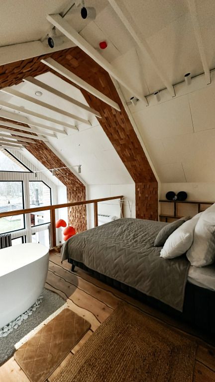 В доме имеется всё для отдыха: два двуспальных места, телевизор, умный дом Алиса, дровяной чугунный камин, душевая, ванна с панорамным видом, кухня со всеми принадлежностями.