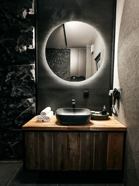 Территория дома обособленна, на свежем воздухе к услугам гостей сауна, бассейн, банный чан, комплекс барбекю, кострище, детская площадка, зона отдыха с летним кинотеатром и настольными играми. В стоимость включены два часа в сауне и в летний сезон неограниченный доступ в персональный бассейн.