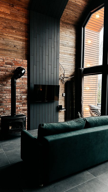 Комфортный дом со вторым светом и панорамными окнами выполнен в лесном эко-стиле. 300-летняя амбарная доска из Красноярска, металл и камень перенесут в атмосферу лесной опушки вдали от цивилизации. Для Амбара особенно внимательно подбирали декор из предметов с более чем вековой историей.