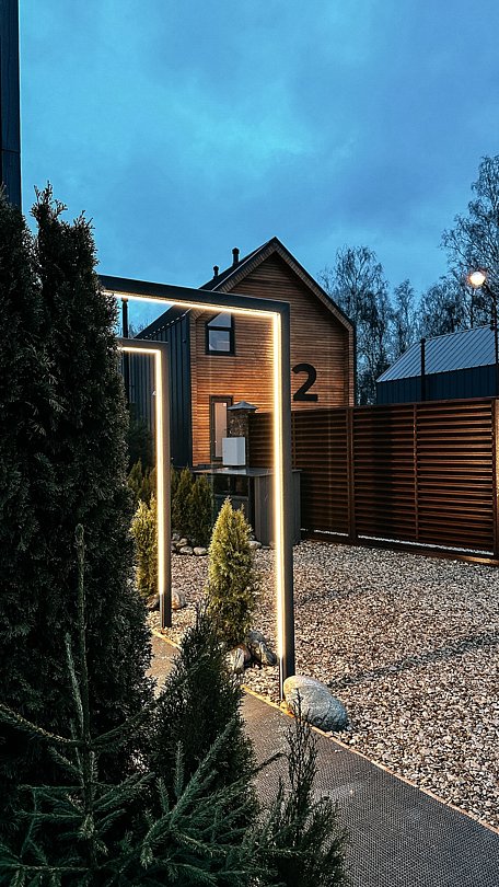 Первый дом, который выполнен в современным стиле. Акцент интерьера на экологичных материалах светлых тонов. Второй свет в доме подарит ощущение воздушности, панорамный вид делает пространство частью окружающей природной среды.