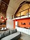Изюминка интерьера — экспозиция с деревянной резной избой ручной работы. Только представьте, как будут выглядеть яркие акценты дома на фоне новогоднего снега за панорамным окном.