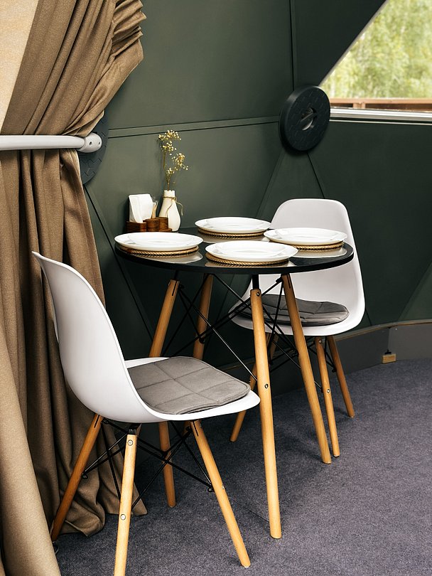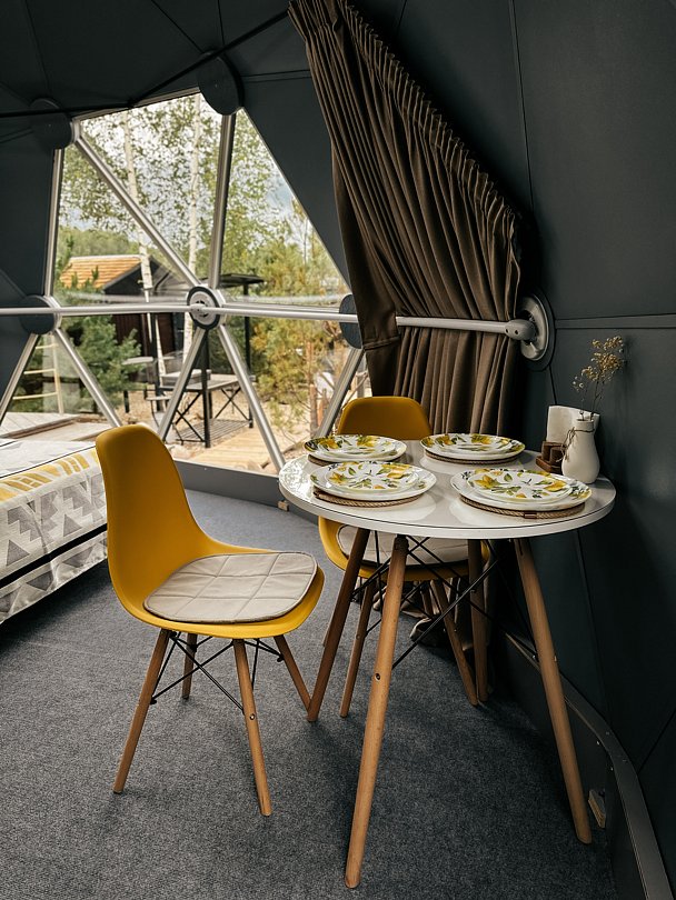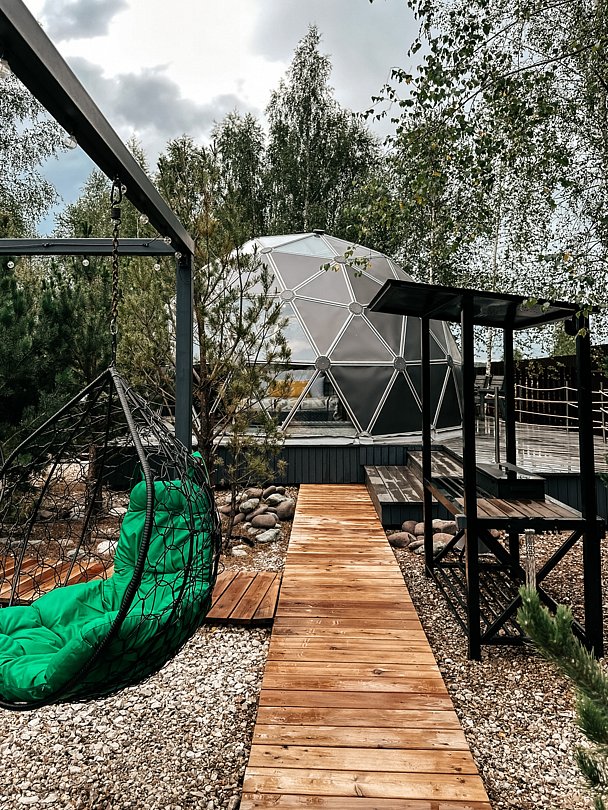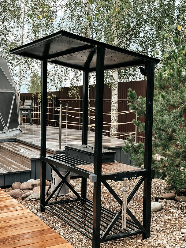 В стоимость проживания в вариантах проживания «Купол» входит: мангальная зона, кострище с качелями, беседка.