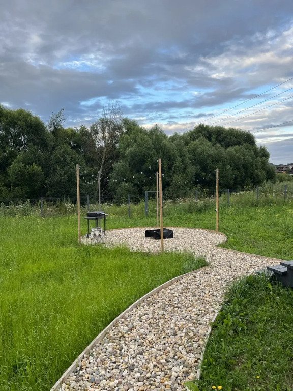 На территории участка располагается дом, мангальная и костровая зона с подсветкой, парковка на два автомобиля. Территория участка полностью огорожена. Территория коттеджного посёлка охраняемая.