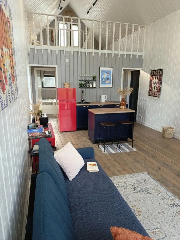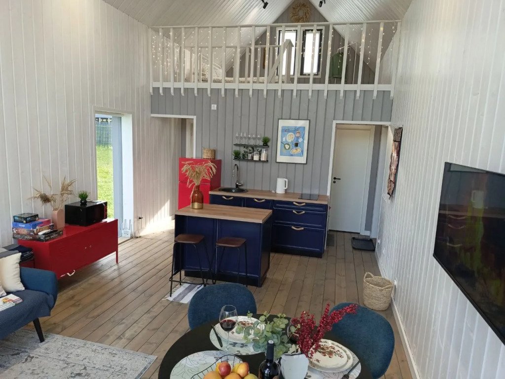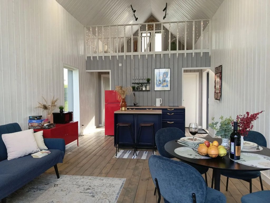 В доме есть две отдельных спальни с двуспальными кроватями, оборудованная кухня с посудомоечной машиной, садовая мебель, кресла-релакс, диван в гостиной, телевизор со Smart TV. Летом гости могут взять сапы, купаться и загорать.