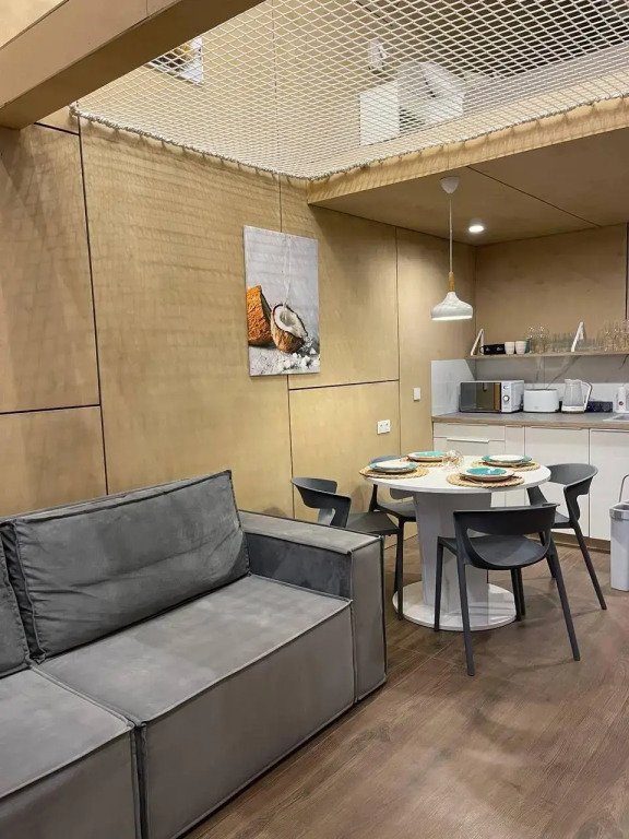 Умная Алиса управляет многими устройствами, включит свет и откроет шторы. Проектор, большой экран и мягкий диван для приятного кино-вечера.