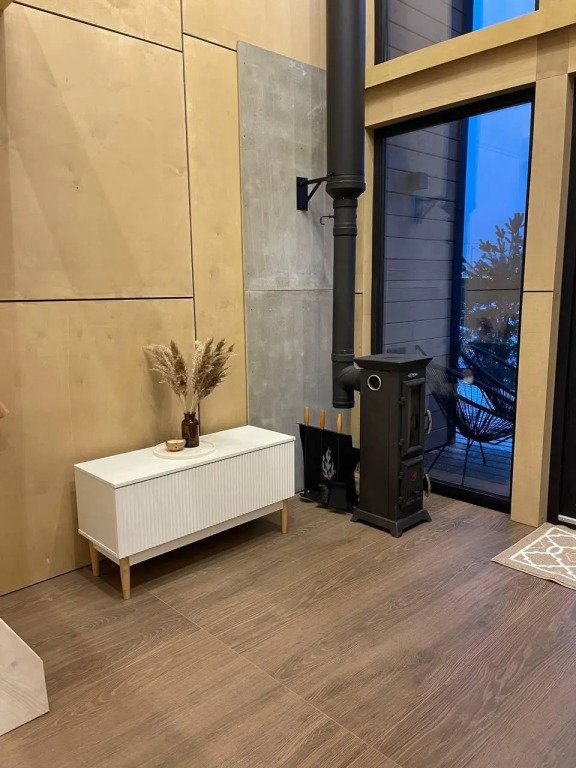 Управлением дома занимается Алиса. Для гостей доступен скоростной Wi-Fi, проектор со Smart TV и тюбинги для катания с горки.