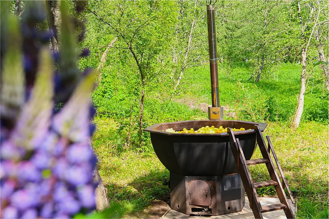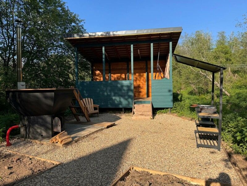 Перед домом есть костровая зона с мангалом и креслами-шезлонгами. Здесь вы можете расслабиться в банном чане или приготовить свою любимую еду на костре, наслаждаясь нетронутой природой. В доме установлен проектор.