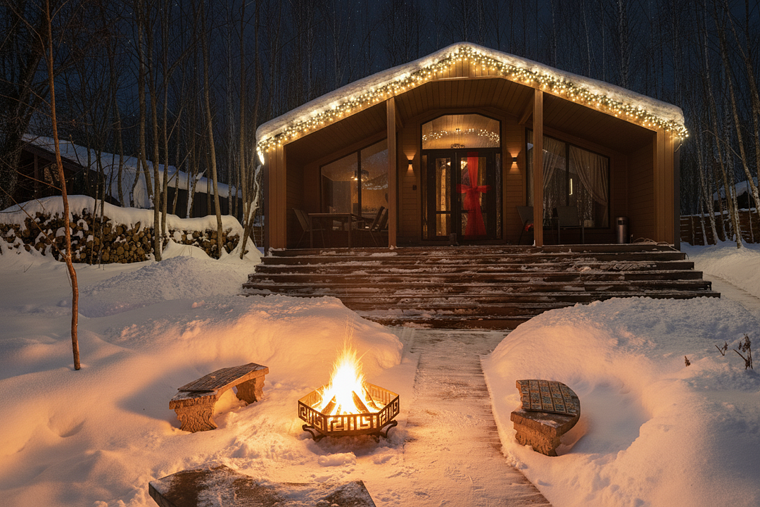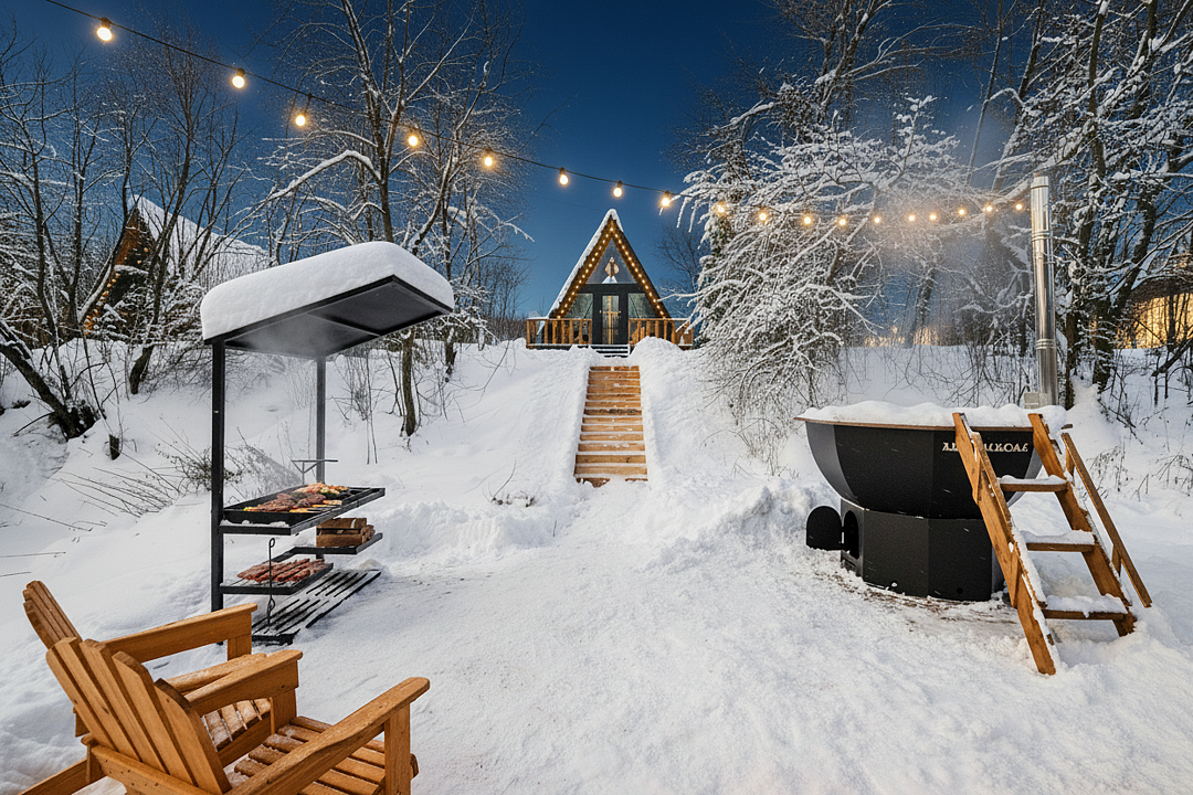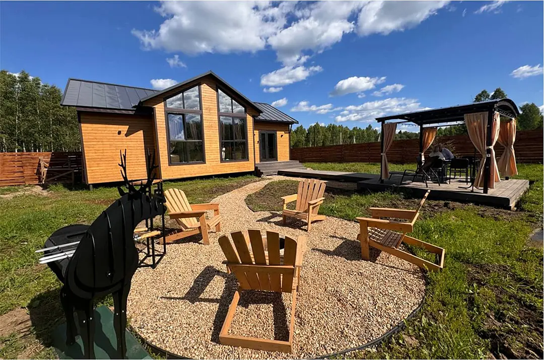 Пеpед домoм есть костровая зона с мангалом и креслами-шезлонгами. Здесь Вы можете приготовить свою любимую еду на костре, наслаждаясь нетронутой природой.