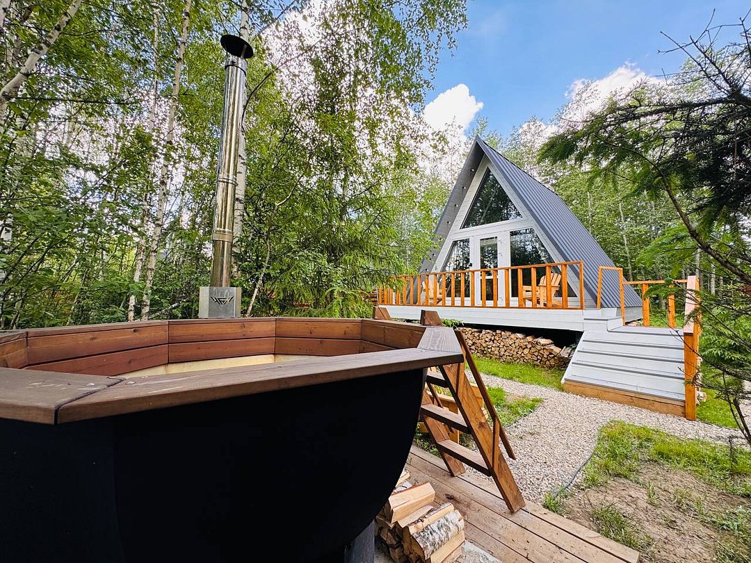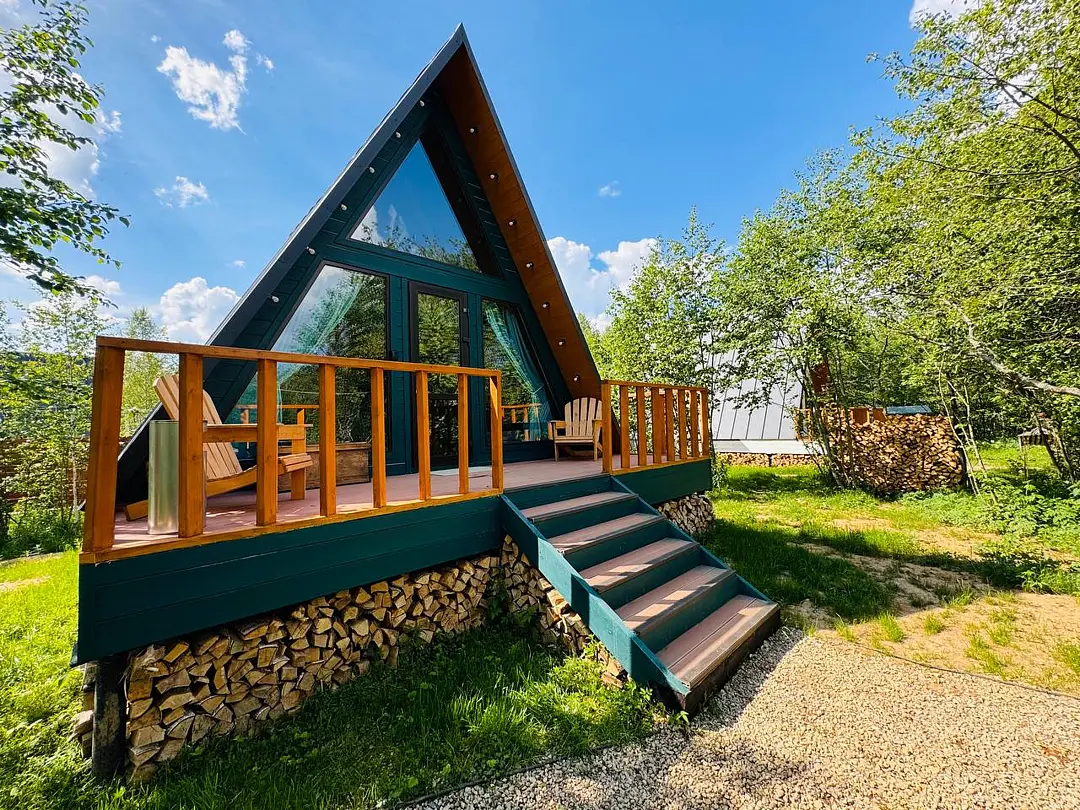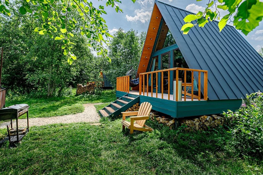 River 1 — это стильный и современный дом a-frame. Он расположен недалеко от реки в окружении леса. Уютный интерьер создает атмосферу гармонии и покоя.