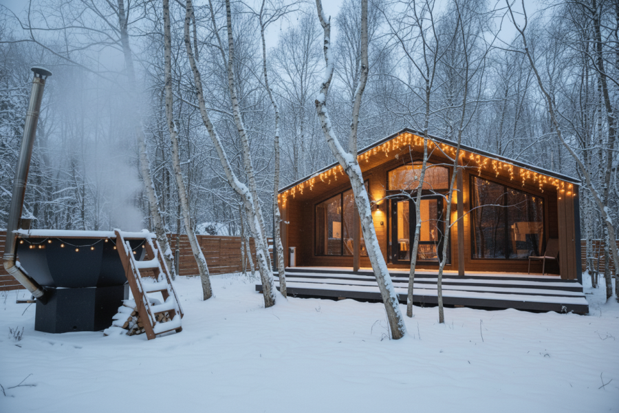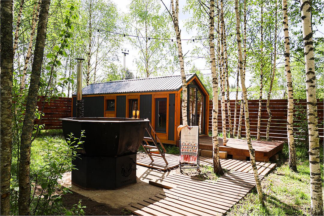 - сходить в баню и расслабиться в горячем чане, наполненном цитрусами и еловыми ветками (наполнение чана на выбор);