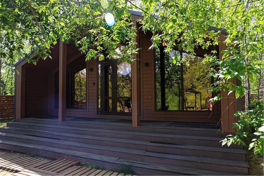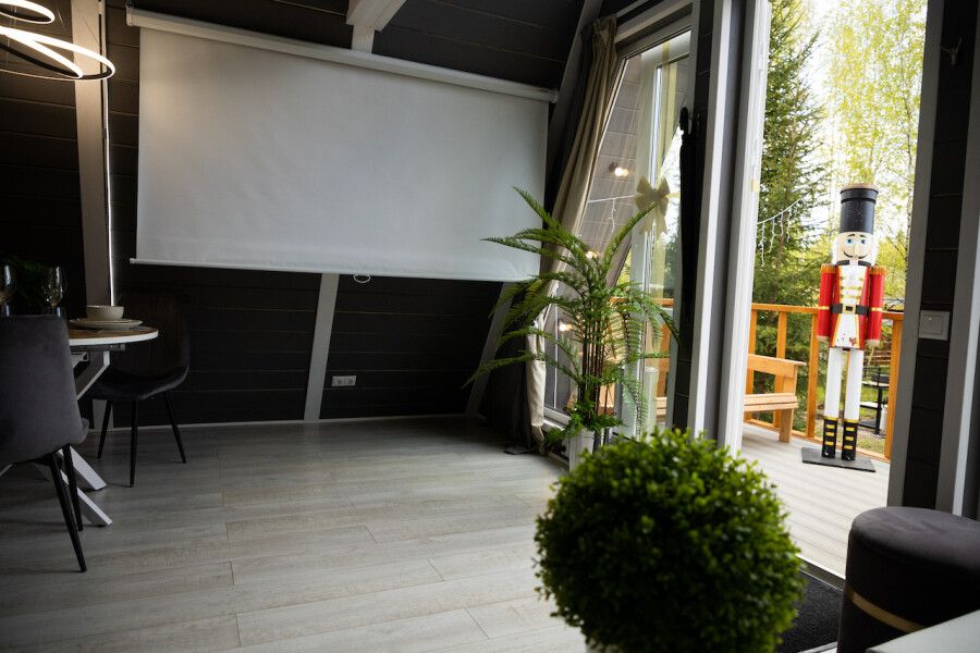 Дизайнерский дом GARDEN 3. На территории этого дома есть мангальная зона, своя закрытая территория для отдыха. В доме установлен проектор.