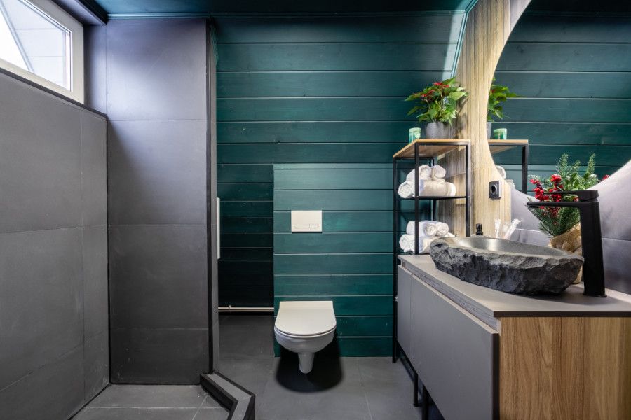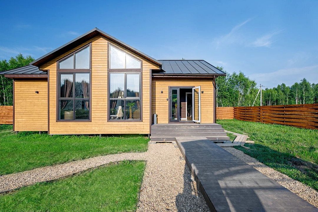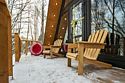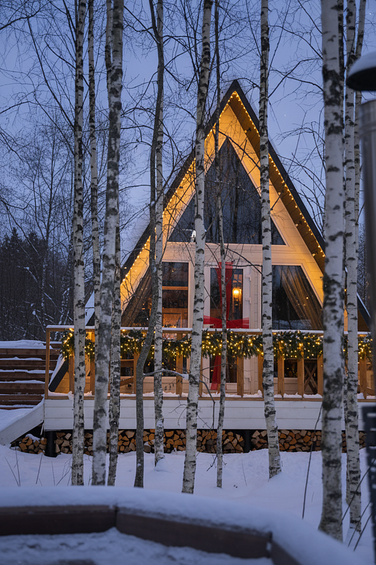 Среди берез и елей расположился стильный, треугольный дом и с шикарным дизайном внутри — River 5. Дом идеально подойдет для семейного отдыха, а из панорамных окон открывается потрясающий вид на живописный лес.