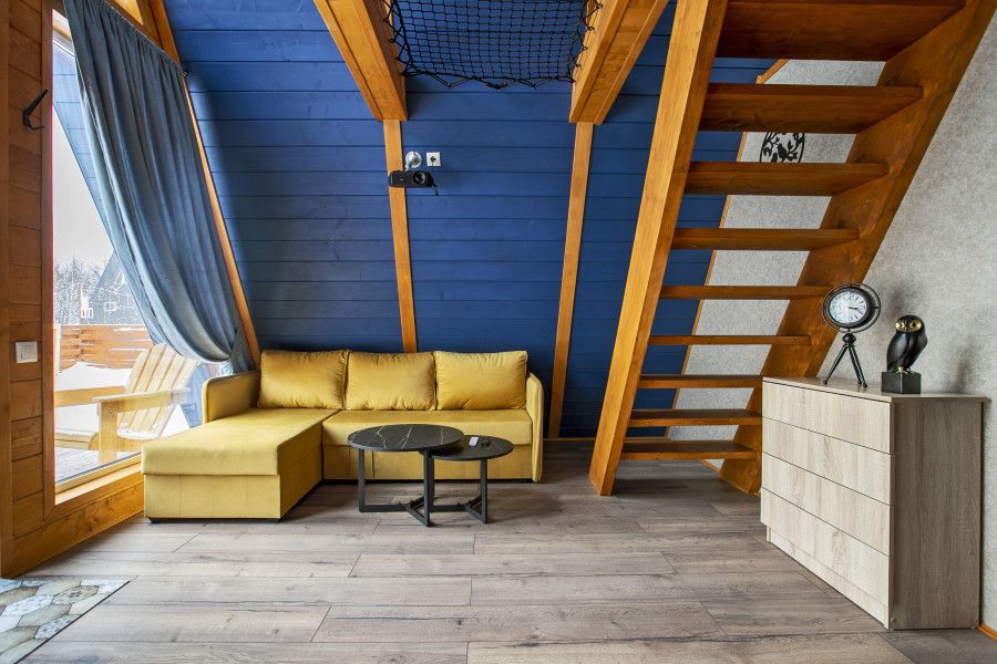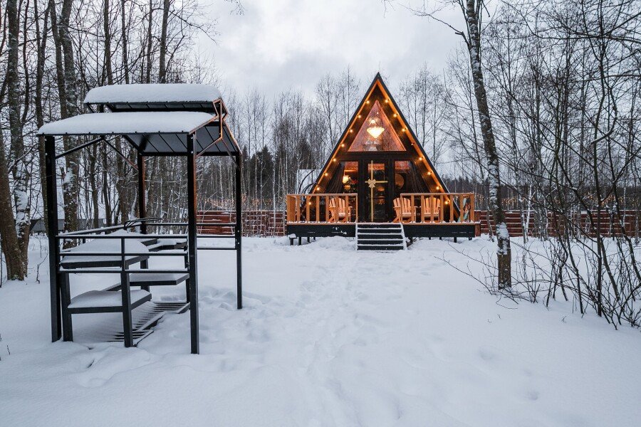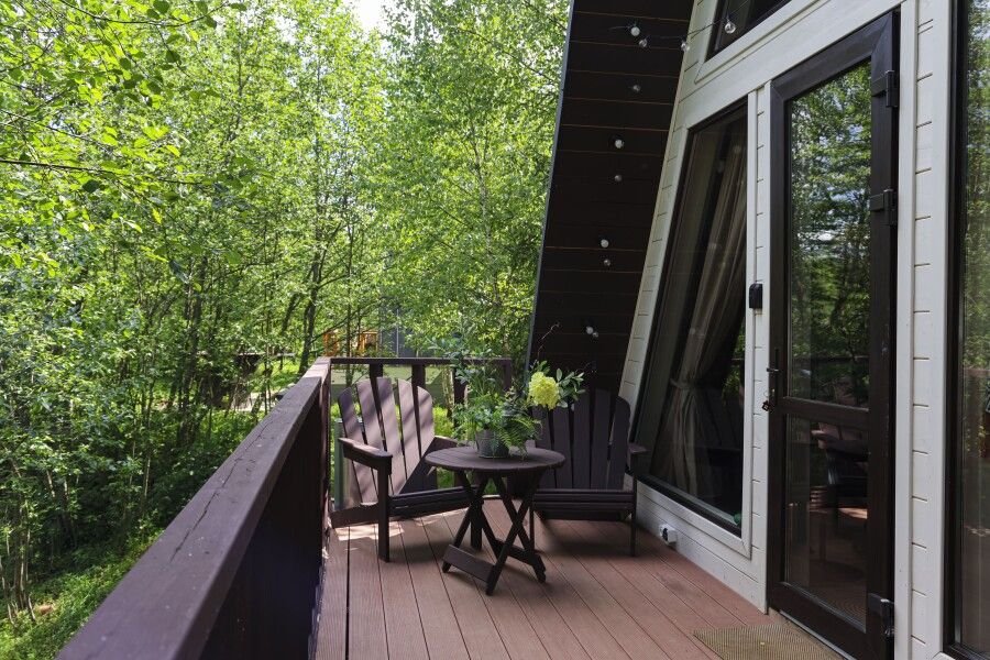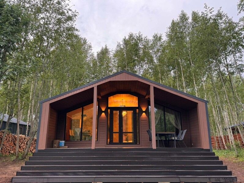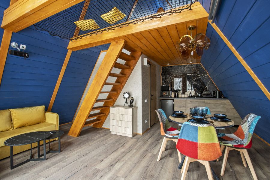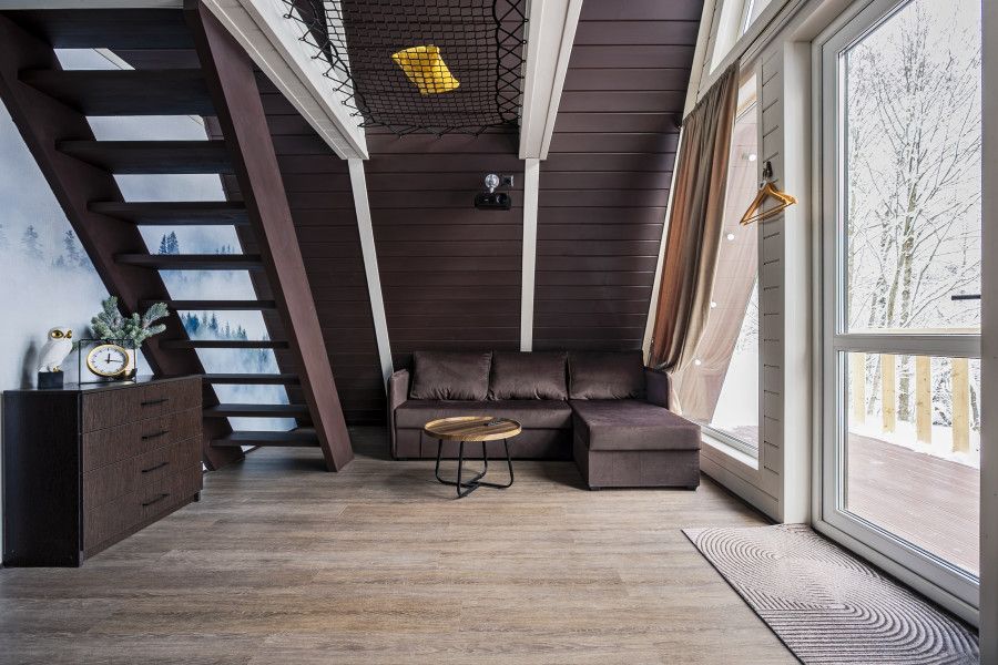 River 3 VIP — это стильный и современный дом a-frame. Он расположен недалеко от реки в окружении леса. Уютный интерьер создает атмосферу гармонии и покоя.