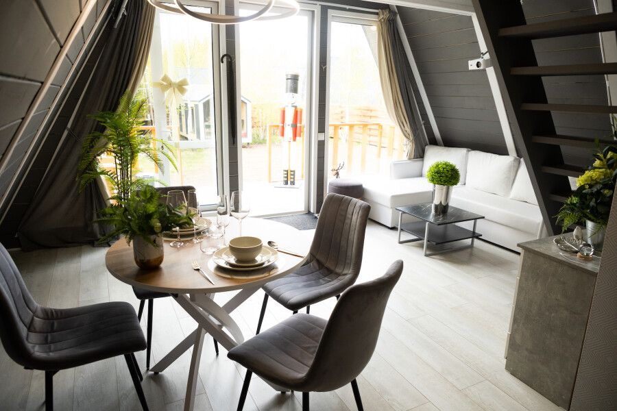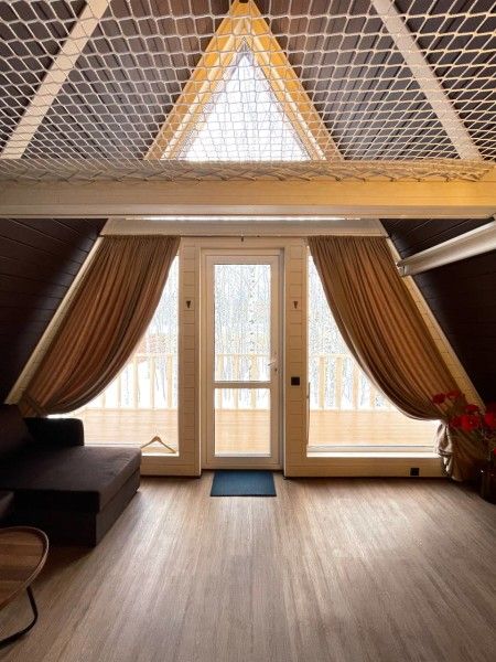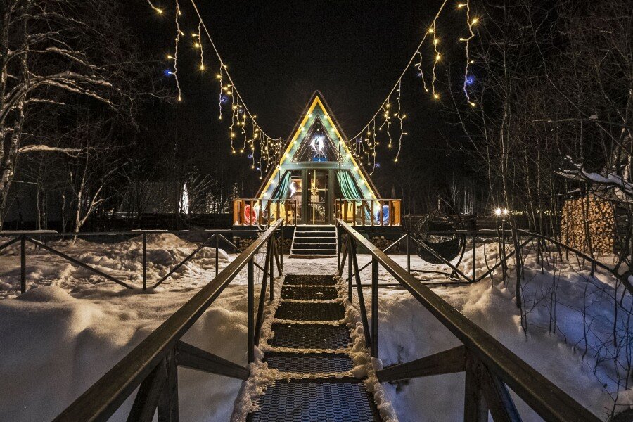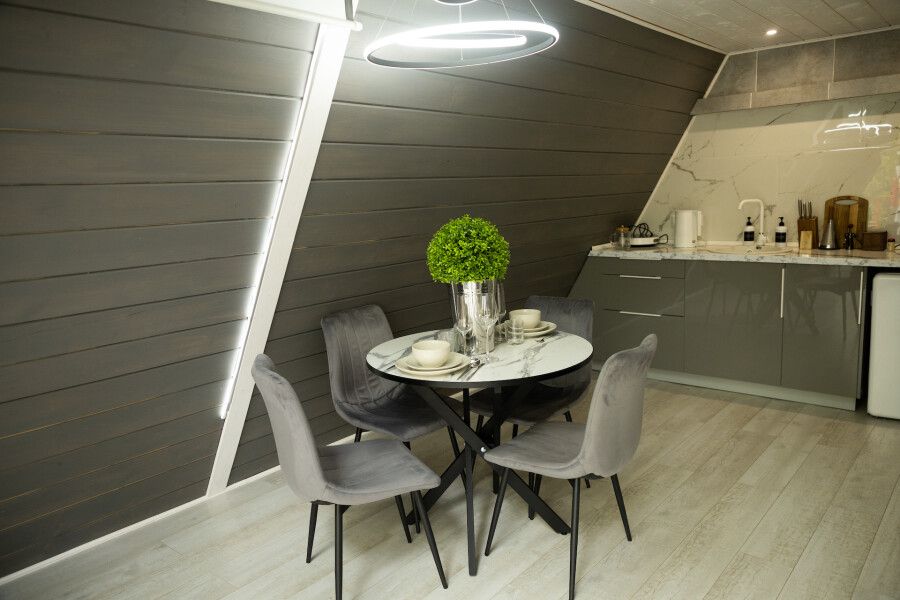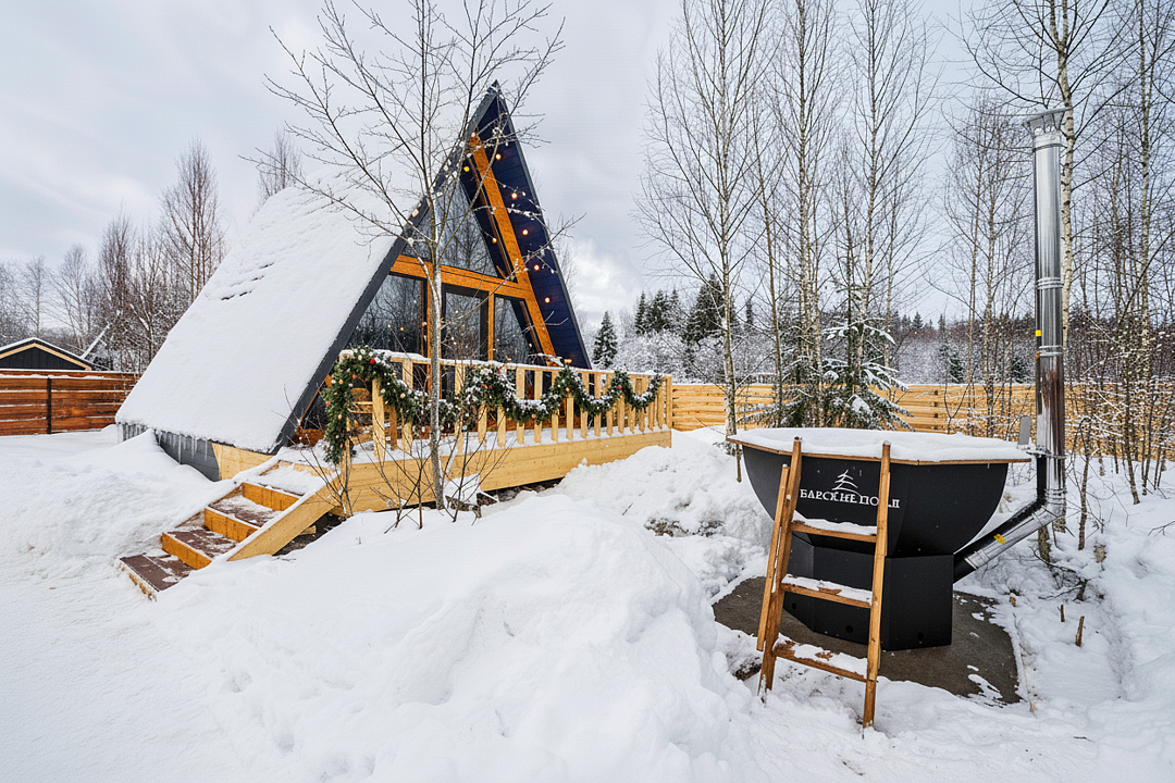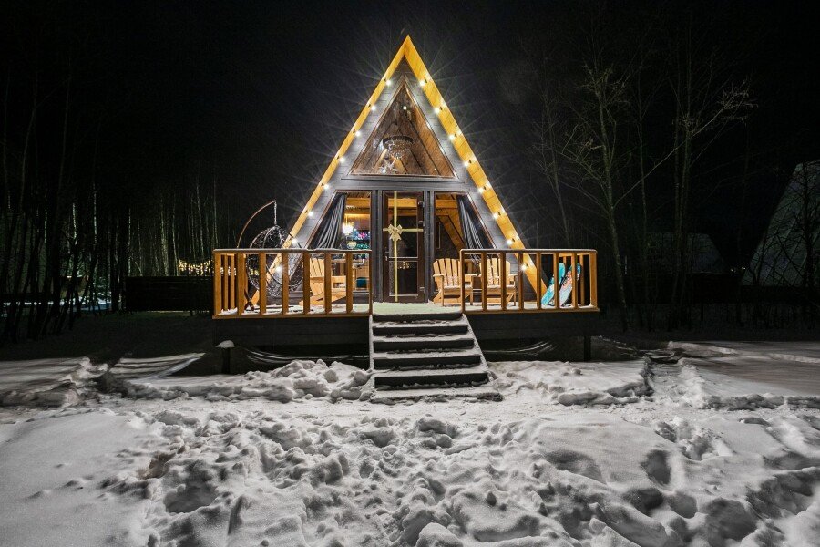 River 3 VIP — это стильный и современный дом a-frame. Он расположен недалеко от реки в окружении леса. Уютный интерьер создает атмосферу гармонии и покоя.