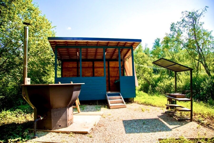 River-2 в стильном декоре расположен недалеко от реки. На территории есть мангальная зона, где Вы можете приготовить свои любимые блюда, а вечером расслабиться в горячем чане.