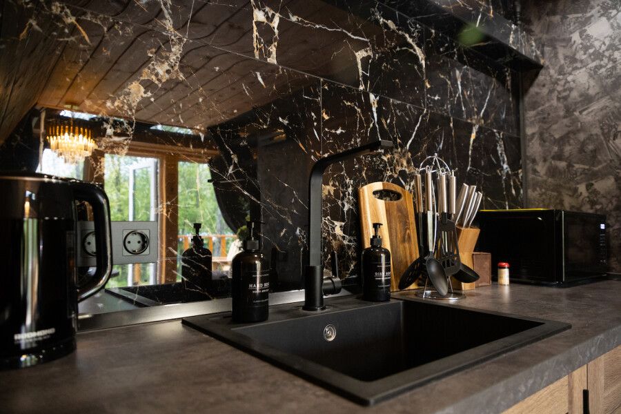 На территории всех домов есть чаны и самый большой выбор ароматных наполнений. В большом доме «Барский дом» есть своя сауна, а в домах Garden-1 и Garden-4 — своя баня. Каждый дом имеет собственную мангальную зону с шампурами и решеткой. В 3-х км от базы отдыха находятся супермаркеты Пятерочка и Магнит, а в каждом домике есть вся необходимая посуда для приготовления еды. Также есть возможность заказа блюд прямо в ваш домик.