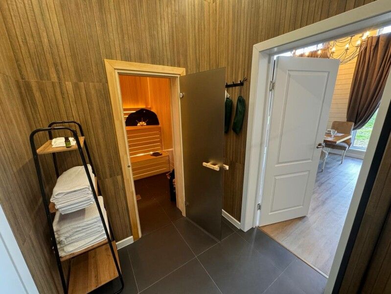 Дом River 4 — это дом с собственным мостом, где на противоположном берегу речки Вас будет ждать горячий чан, зона барбекю и беседка для отдыха. В доме установлен проектор.