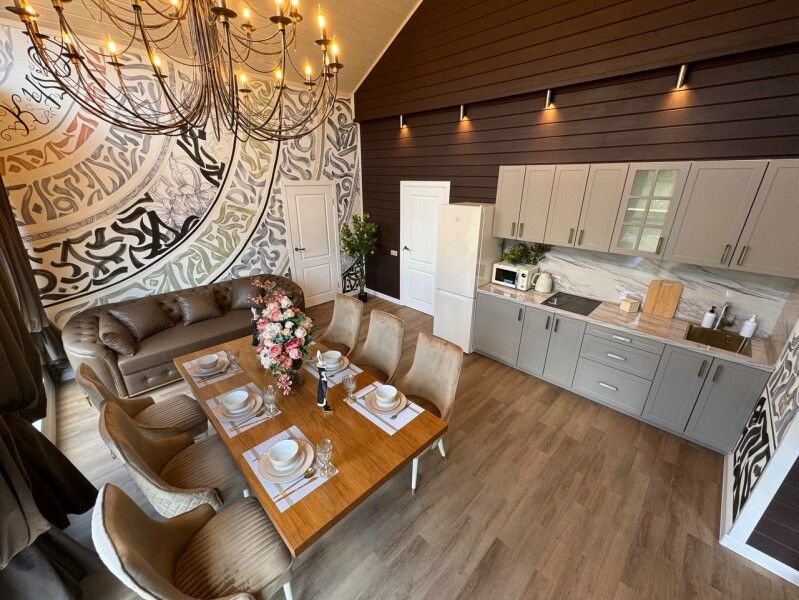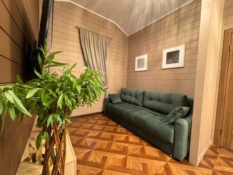 Барский дом — воплощение уюта и комфорта. В этом просторном доме Вас ждут две уютные спальни с двуспальными кроватями, большой диван для отдыха в кругу друзей, стол, за которым легко может разместиться большая компания, и функциональная кухня. В доме также расположена баня, где можно отдохнуть и восстановить силы после активного дня. В доме установлен телевизор.