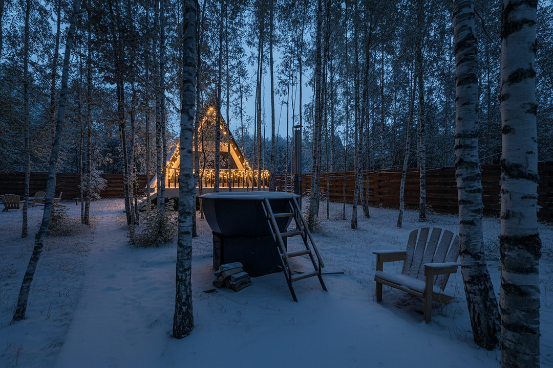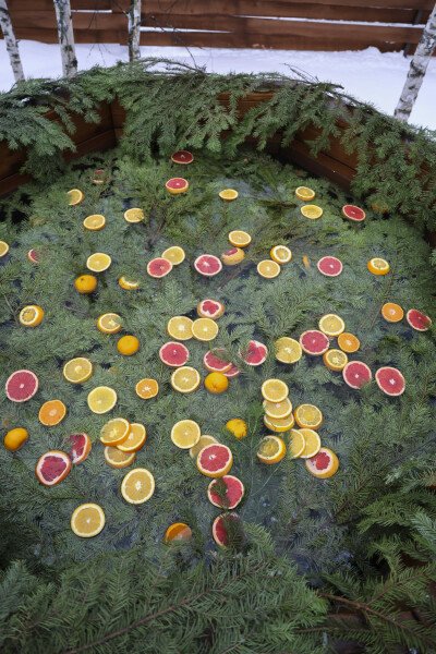 - сходить в баню и расслабиться в горячем чане наполненном цитрусами и еловыми ветками (наполнение чана на выбор);