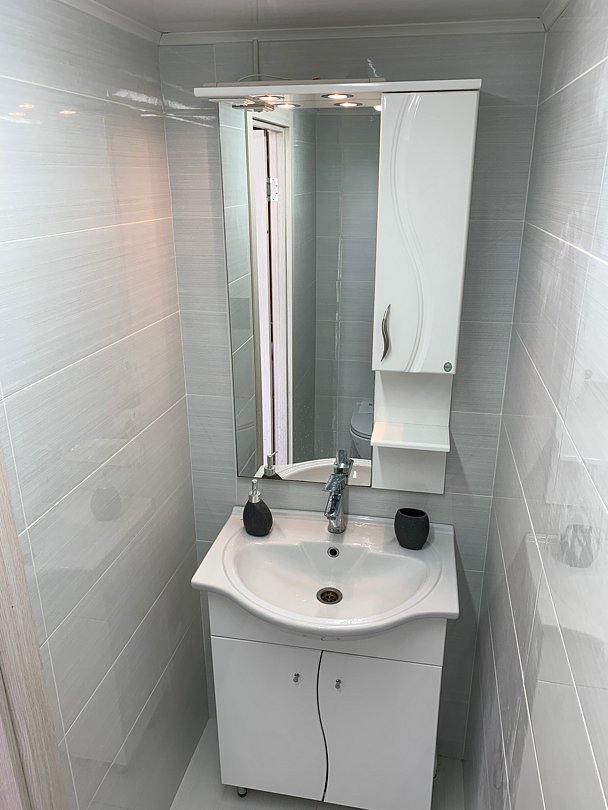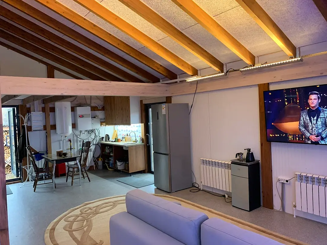 4 спальных места для проживания: двухместный раскладной диван и кровать на антресоли King Size.