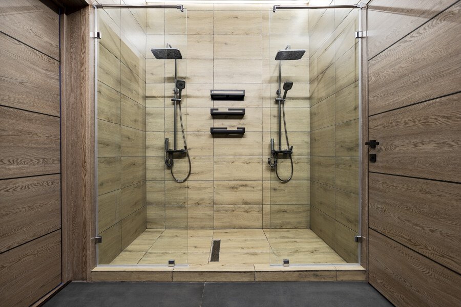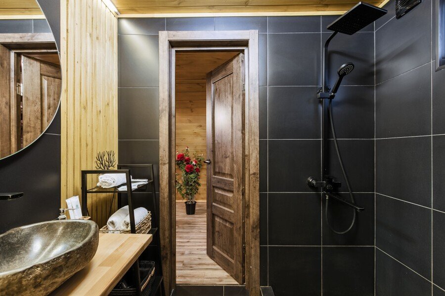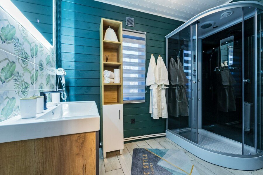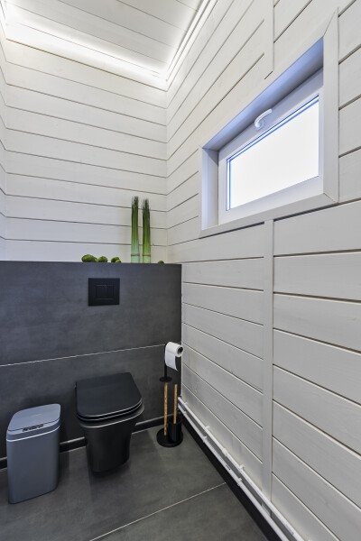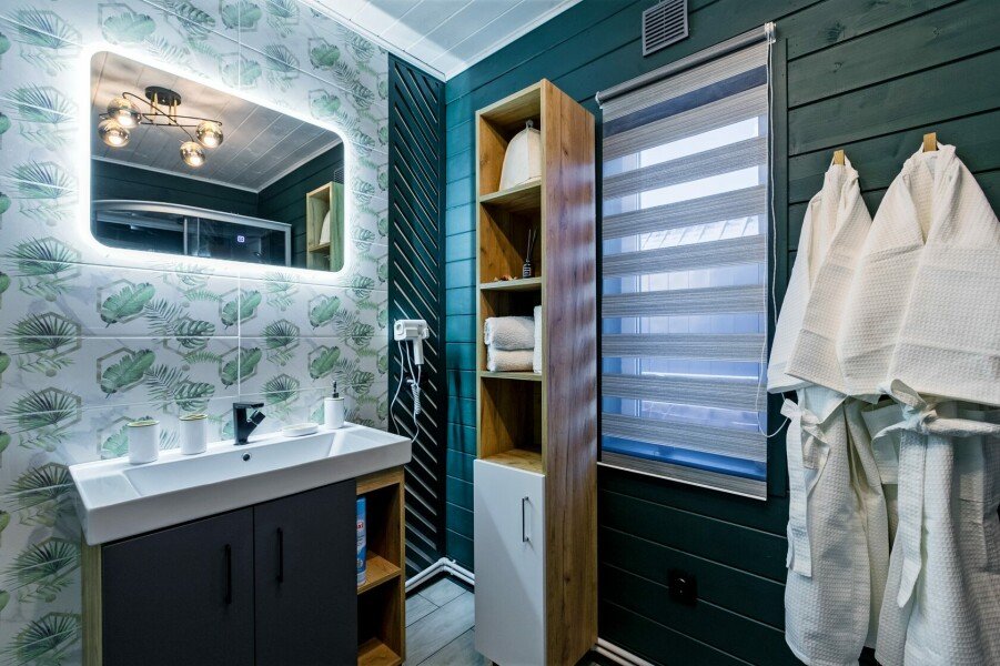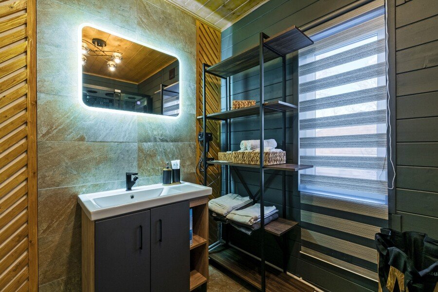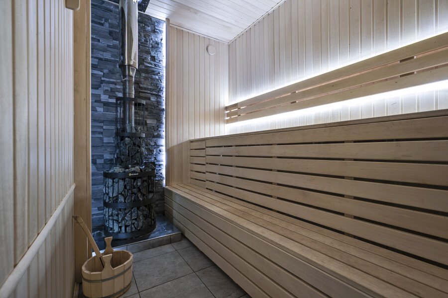 В доме «HOLIDAY house» есть баня, спроектированная с учетом рекомендаций опытных мастеров: тщательно продуманная система вентиляции обеспечивает приток свежего воздуха во время парения, создавая приятную и комфортную атмосферу.Баня «HOLIDAY house»
