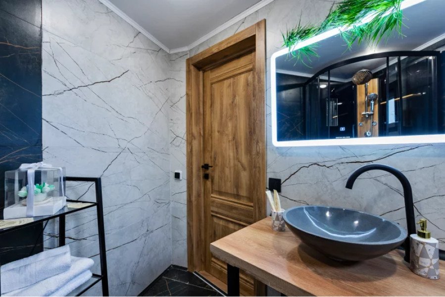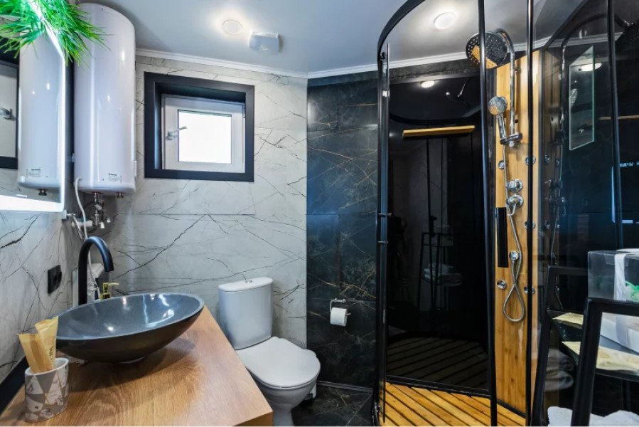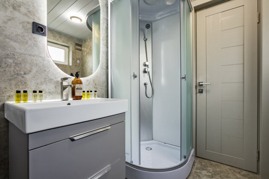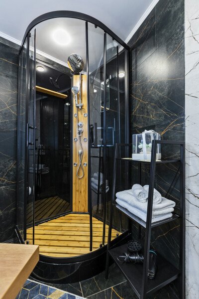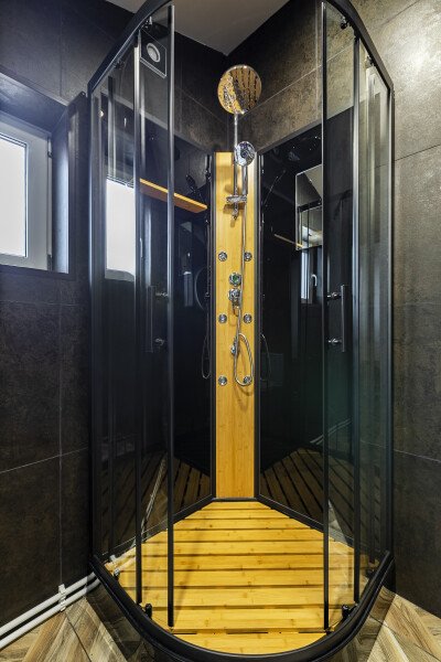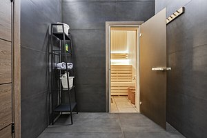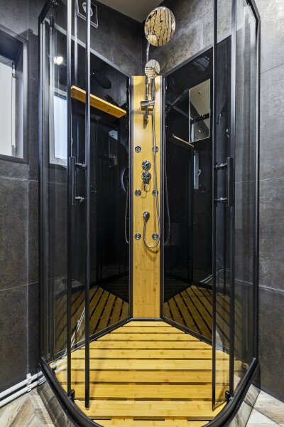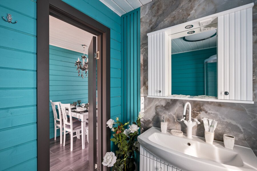 В доме «HOLIDAY house» есть баня, спроектированная с учетом рекомендаций опытных мастеров: тщательно продуманная система вентиляции обеспечивает приток свежего воздуха во время парения, создавая приятную и комфортную атмосферу.Баня «HOLIDAY house»