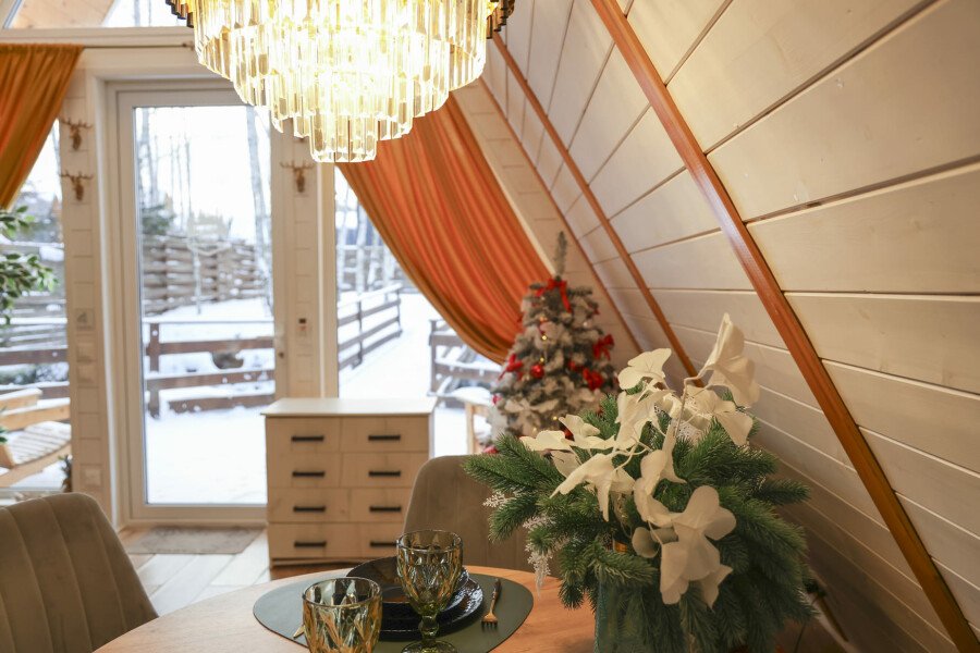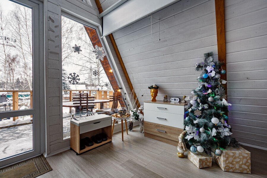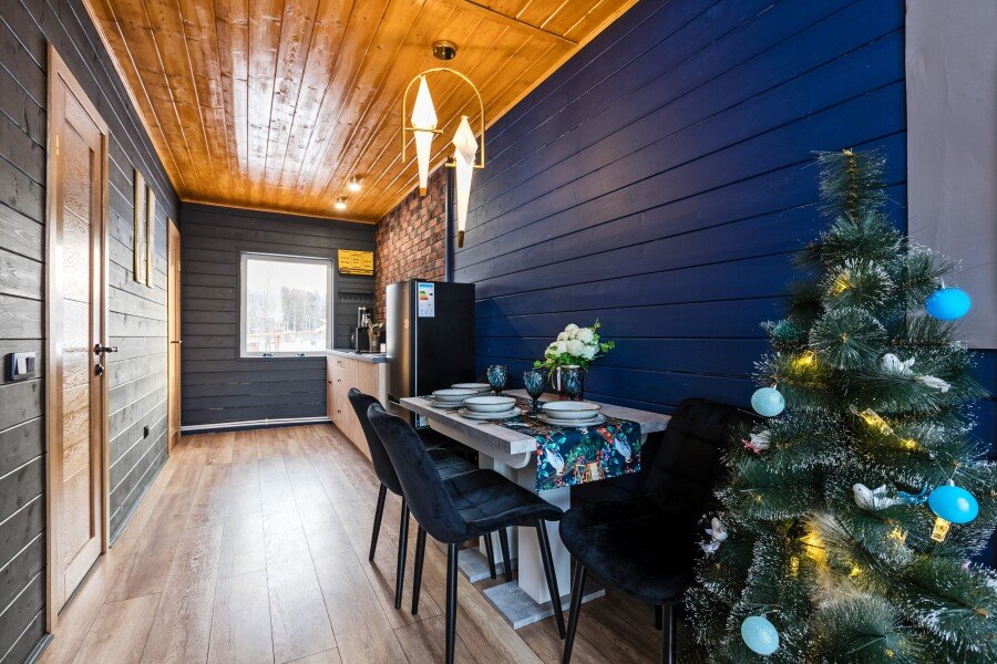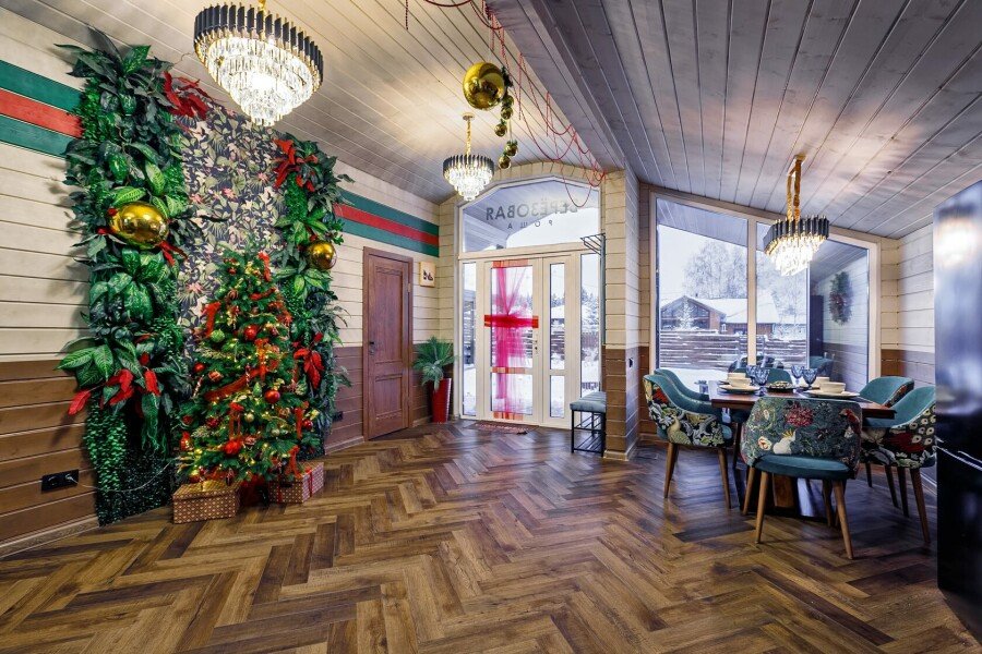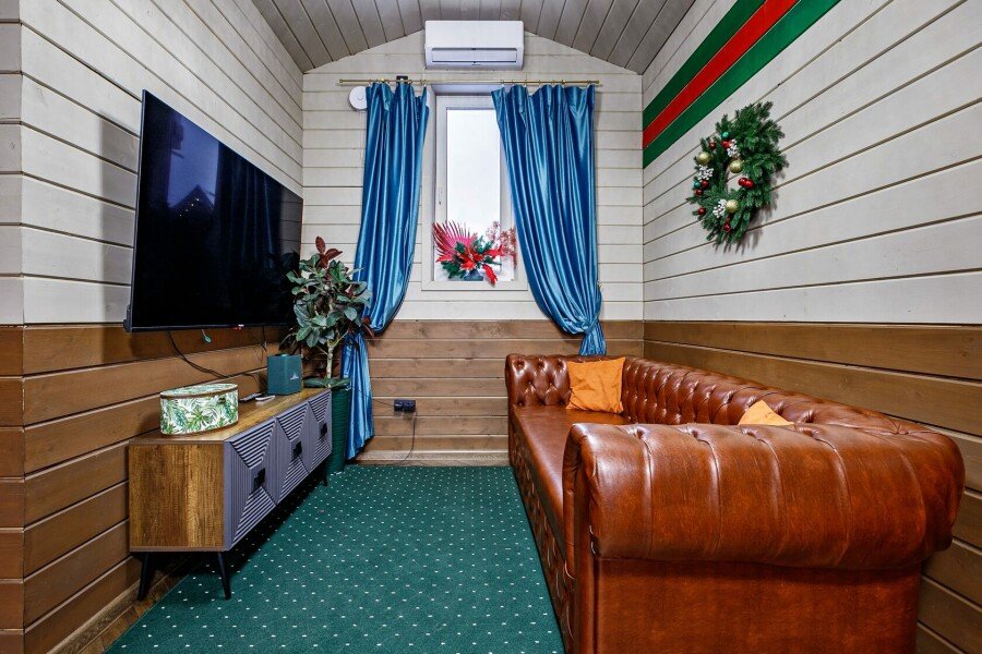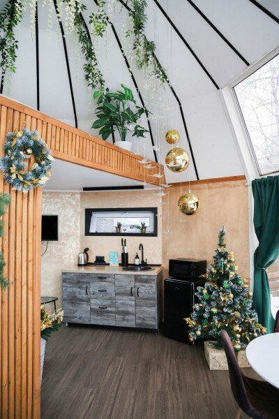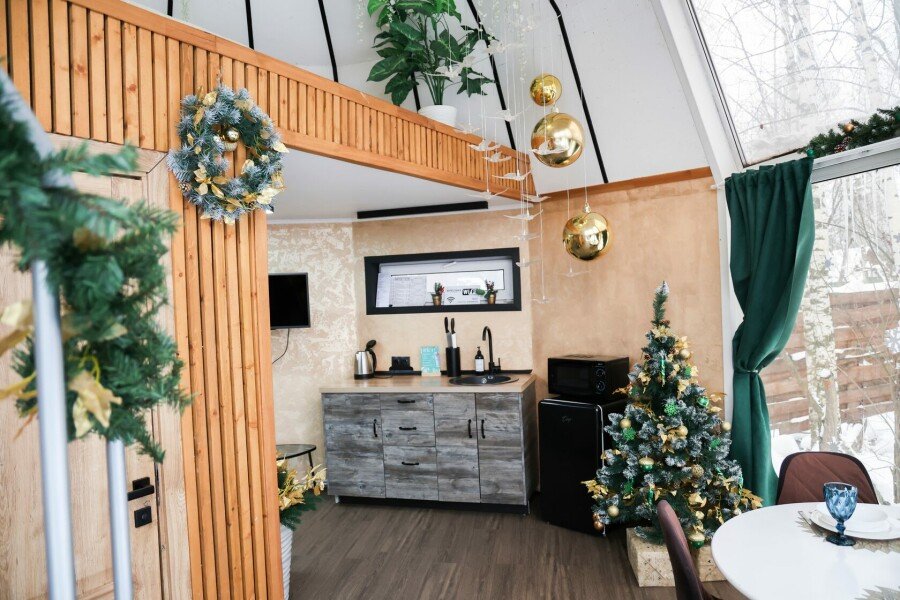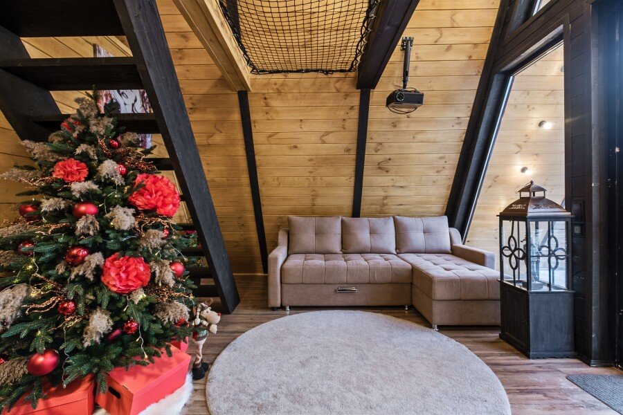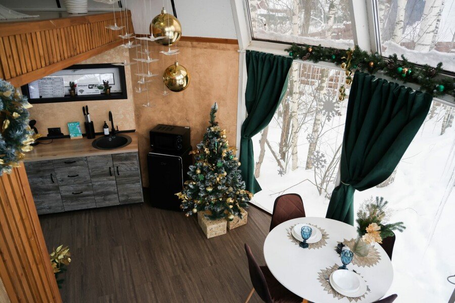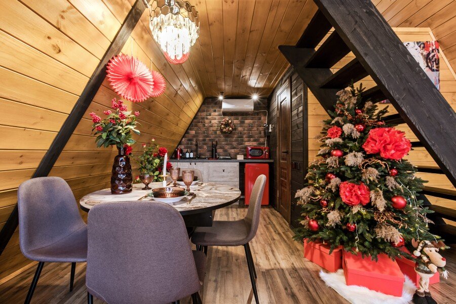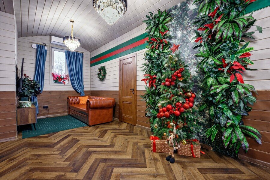 Комфорт и тепло ждут вас: мы создали интерьер, который наполнен атмосферой сказки, чтобы вы могли насладиться романтикой и праздничной теплотой дома. А воспоминания о горячем чане с еловым наполнением под мерцающими огоньками и снежным покровом за окном заставят вас возвращаться сюда снова и снова, наполняя сердце новогодним волшебством и радостью.