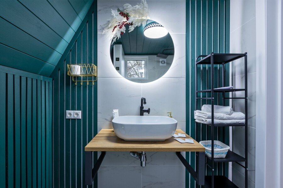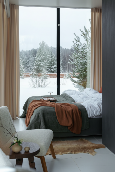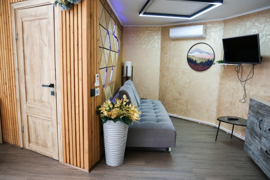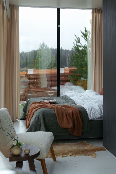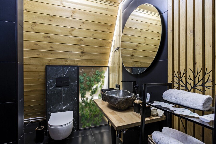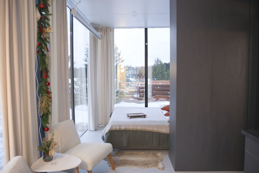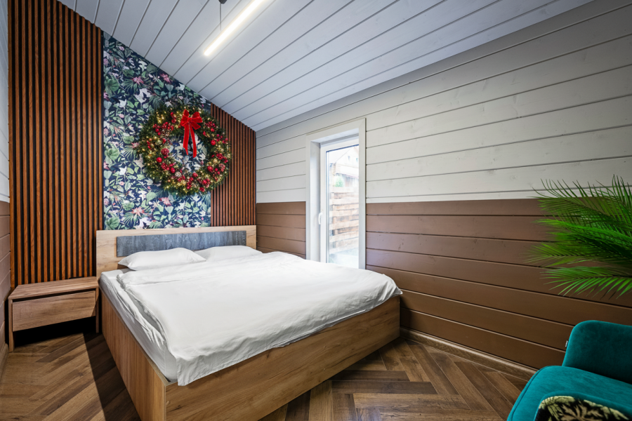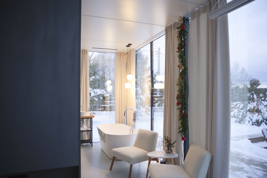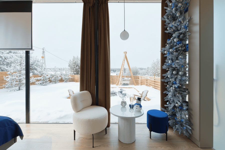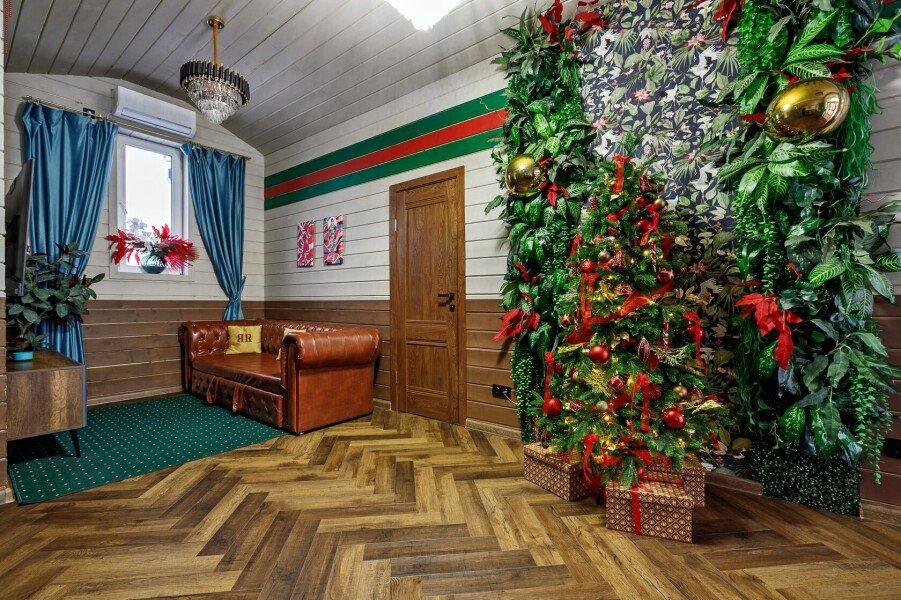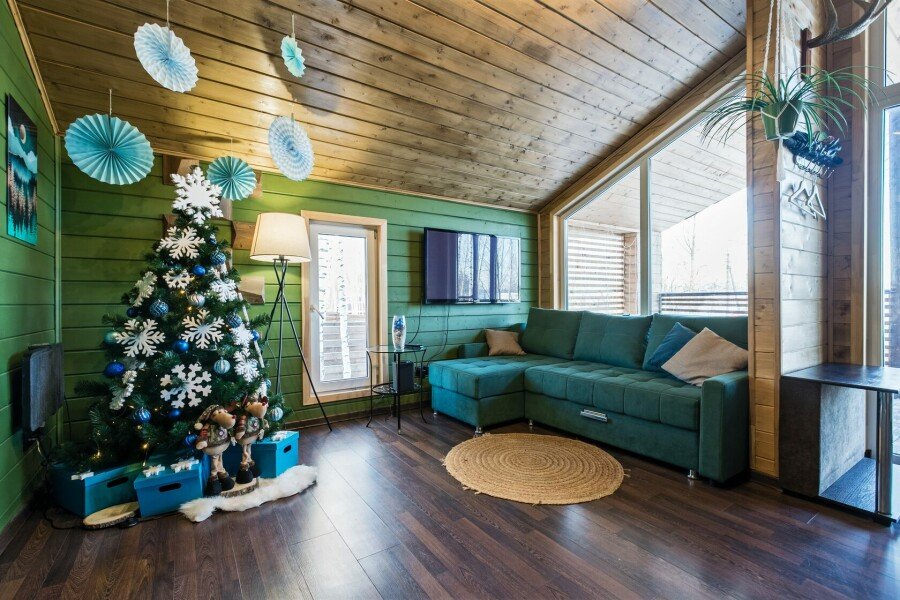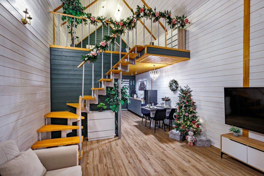 Комфорт и тепло ждут вас: мы создали интерьер, который наполнен атмосферой сказки, чтобы вы могли насладиться романтикой и праздничной теплотой дома. А воспоминания о горячем чане с еловым наполнением под мерцающими огоньками и снежным покровом за окном заставят вас возвращаться сюда снова и снова, наполняя сердце новогодним волшебством и радостью.