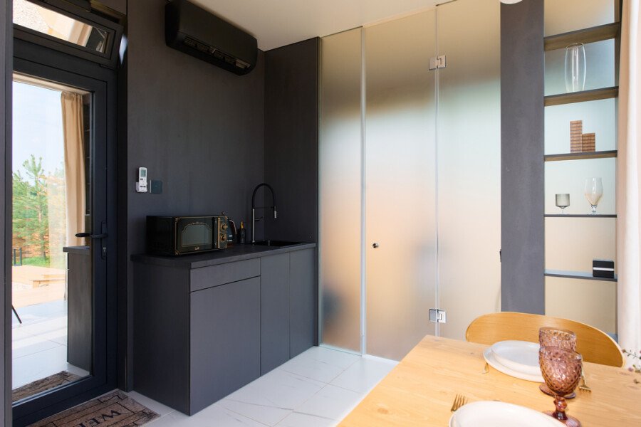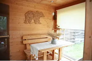 Использование чана оплачивается отдельно. В стоимость домика входит: Wi-Fi на всей территории базы и в каждом домике, парковка на территории базы отдыха, зона барбекю, постельное белье, полотенца, зубные щетки, гель для душа и шампунь, фен, холодильник, плита, чайник, микроволновая печь и вся необходимая посуда, чай, сахар, соль.