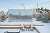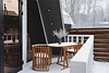 Терраса для отдыха на свежем воздухе, где можно попить кофе или насладиться закатом. Дом рассчитан на двух человек. Наслаждайтесь каждым моментом вдвоем в зеркальном доме Baus — месте, где природа и комфорт встречаются в идеальном единстве.