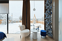 Дом «House 4» — словно со страниц сказки, с винтажным стилем и очаровательными отсылками к фильму «Завтрак у Тиффани». В окружении мягкого снежного покрова он превращается в волшебное зимнее убежище, наполненное теплом и уютом.