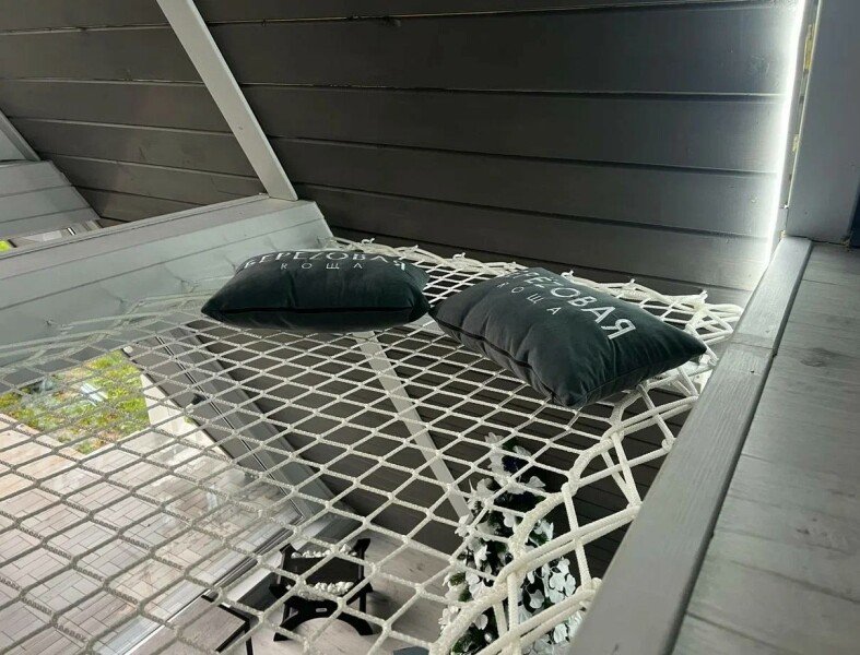 Плюсы этого дома: бесплатная беседка с ВВQ грилем и мангалом; отдельная территория с большим количеством берез; рерила от моста до края дома (дети будут в безопасности); сетка гамак на втором этаже как защита для детей и место для отдыха; банный чан.