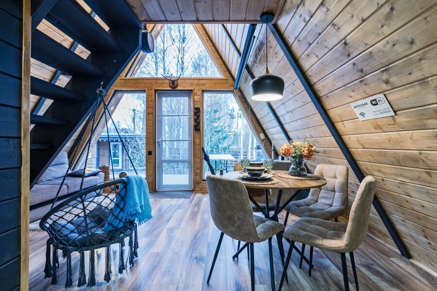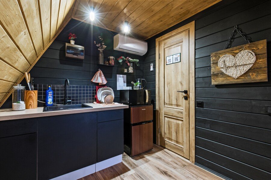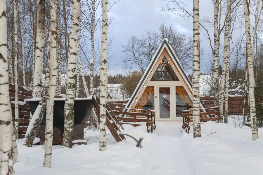 A-Frame Black — один из самых уютных и романтичных домов, где в зимней сказке вы можете провести незабываемый вечер с дорогими вам людьми. Представьте, как вокруг сияет снежный покров, а в воздухе витает волшебство новогодних праздников. Здесь можно приготовить любимые блюда на мангале, прогреться в бане, банном чане и насладиться душевным отдыхом.