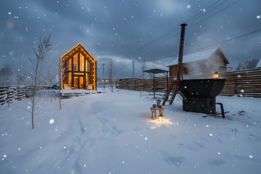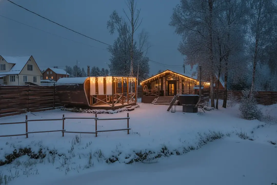 В этом доме вы можете окунуться в тепло бани и чана — идеальный способ сменить обстановку и окунуться в атмосферу уюта. В окружении снежного покрова и мерцающих огоньков он станет особенным местом для тех, кто ищет новые впечатления и хочет почувствовать настоящую зимнюю сказку у себя под боком.