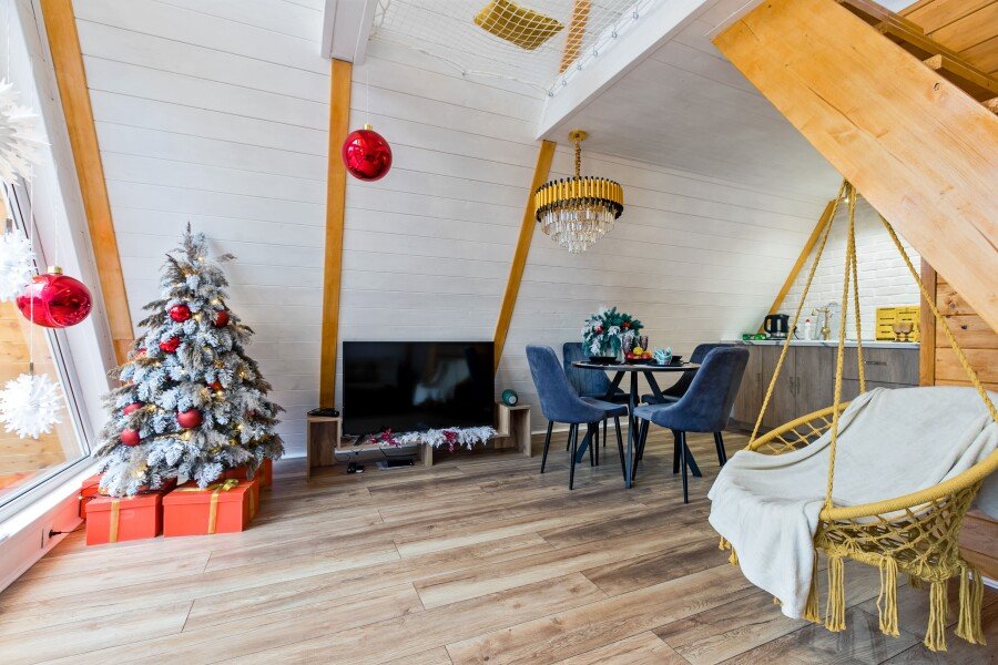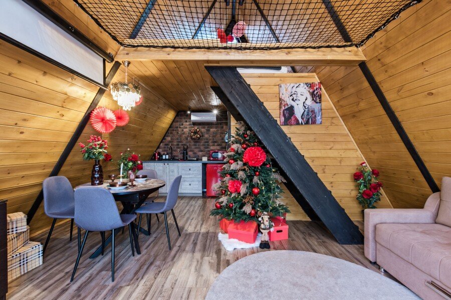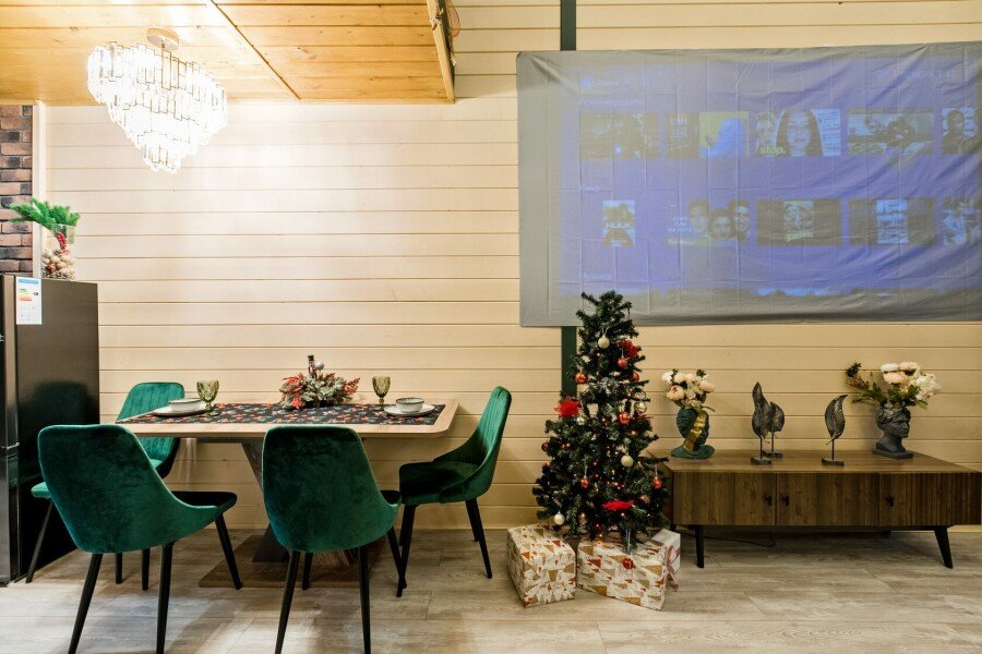 В окружении мерцающих огоньков, сияющих гирлянд и зимнего волшебства этот дом станет прекрасным местом для вашего праздника, чтобы создать незабываемые романтические моменты и почувствовать настоящий дух Нового года. Пусть ваш отдых будет наполнен теплом, любовью и праздничной магией!