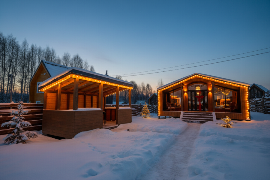 Представляем вашему вниманию дом «House-2» — уютное зимнее уединение, где мерцающий снег и праздничная атмосфера создают настроение настоящей новогодней сказки. Это место, чтобы забыть о повседневных заботах, расслабиться и зарядиться праздничным настроением.