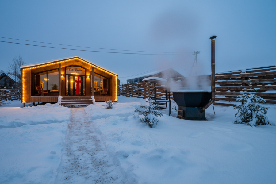 Представляем вашему вниманию дом «House-3» — маленькое сказочное уютное место, идеально подходящее для душевных и весёлых встреч. В окружении зимней сказки и мерцающего снега горячий чан у дома поможет вам окунуться в расслабляющую атмосферу тепла и уюта.